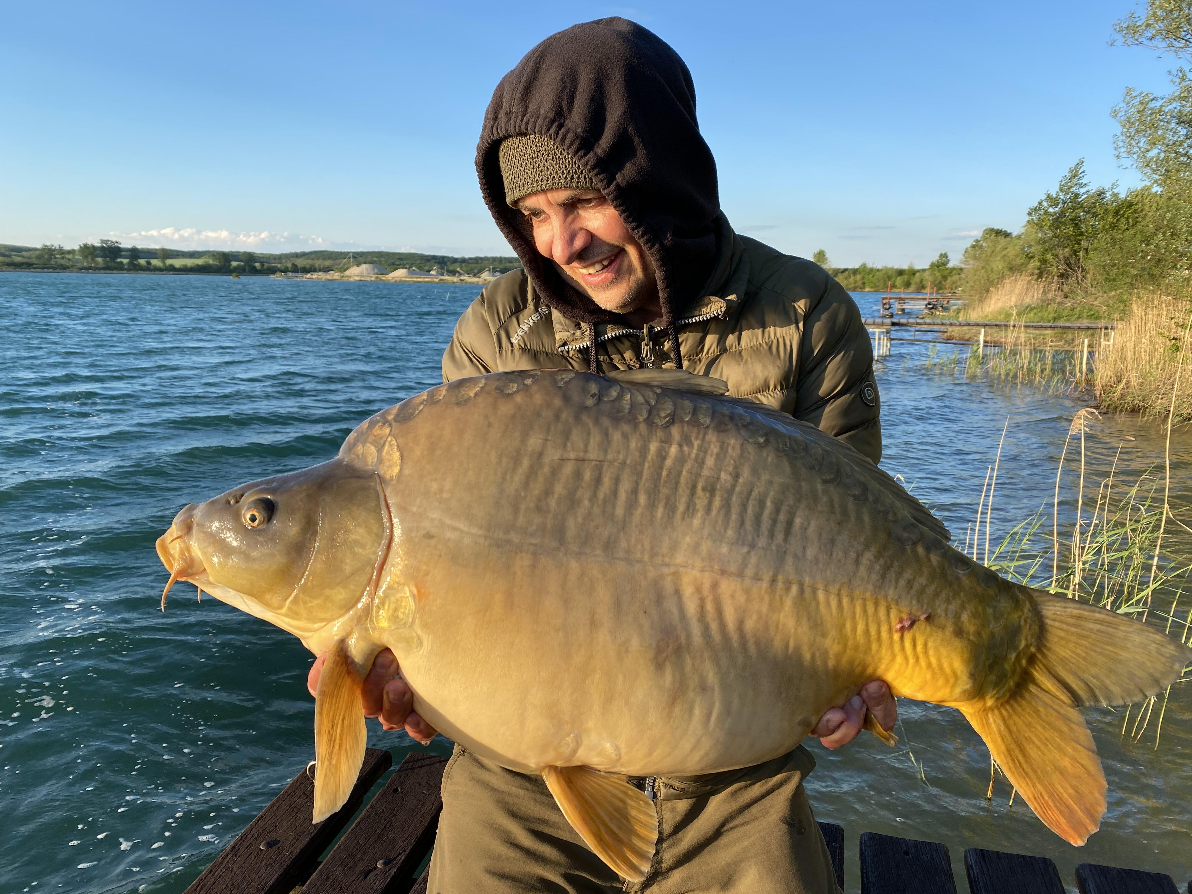 A délután megerősödő északi szél a tanya előtti részt rendesen felkavarta, gondoltam, bedobok a szélvízbe, mivel bányatavakon a nagyobb hullámok csapta partszél mindig ígéretes – régi tapasztalatom ez, és a könyvemben is írtam erről korábban, de a lényeg nagyjából a zavaros, táplálékkal és oxigénnel dúsuló vízben keresendő. Az elképzelésem helyesnek bizonyult, a bedobás után tíz perccel már egy öt körüli pontyot fárasztottam. Nem sokkal később pedig a másik bot is elfüstölt, sőt, akasztás után jó tízperces, élménydús fárasztás következett, majd egy pazar, ereje teljében lévő tizenöt feletti tükröst merítettem. Micsoda kezdés, micsoda horgászat! Imádlak Gyékényes!