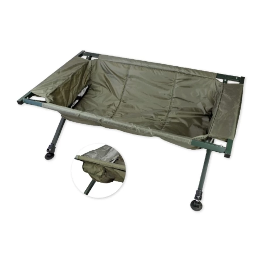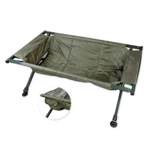 A Carp Zoom állványos pontybölcső jellemzői: erős alumínium váz, párnázott matrac, állítható lábak, önbeálló talpak. Könnyű összeállítani, teljesen öszszecsukható, könnyen szállítható. Praktikus hord táskával.