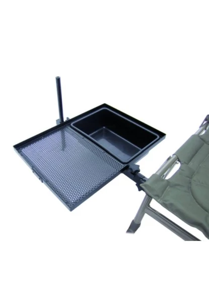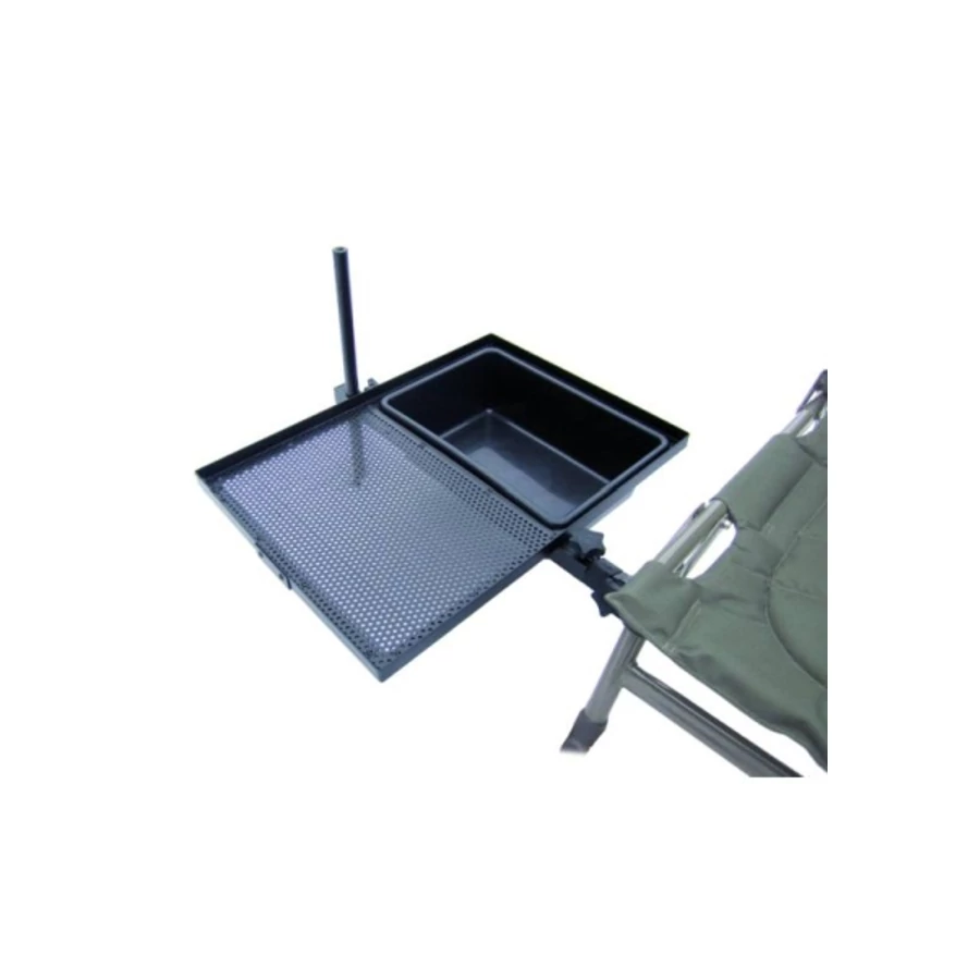 Bármilyen székre felrögzíthető, így mindig elérhető távolságban lesznek a csalijaink, aromáink és a kisebb kellékeink.
