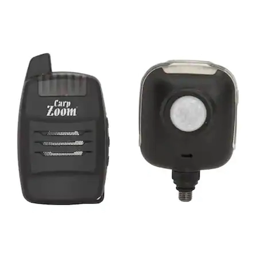 Többnapos horgászatoknál az alvás ideje alatt a botok, a rod-pod és az egyéb felszerelés felügyelet nélkül maradhat! Sajnos előfordul, hogy ébredés után ezek hűlt helyét találjuk. Ennek megakadályozásában segít a CarpZoom mozgásérzékelős riasztó rendszere. A fehér félgömbbel ellátott érzékelő menete minden szabvány leszúróval kompatibilis, így könnyedén kihelyezhető, a jobb oldalán található gomb pár másodperces megnyomásával azonnal aktiválódik. Mozgás esetén a szenzor azonnal jelez, villog és hangjelzést ad. A vevőt magunk mellé helyezve azonnal értesülünk arról, ha váratlan „vendég” érkezett. Ennek hangereje szabályozható. Tökéletesen alkalmas a rókák távoltartására is, melyek gyakorta kilopják a csalihalat a vödörből, megdézsmálják az elérhető magasságban lévő bojlit és kint hagyott elemózsiát. Szenzor: 3 db AAA, vevő 1 db 9V (6LR61).