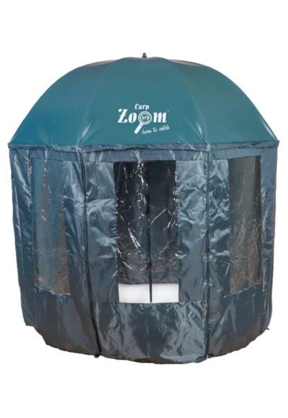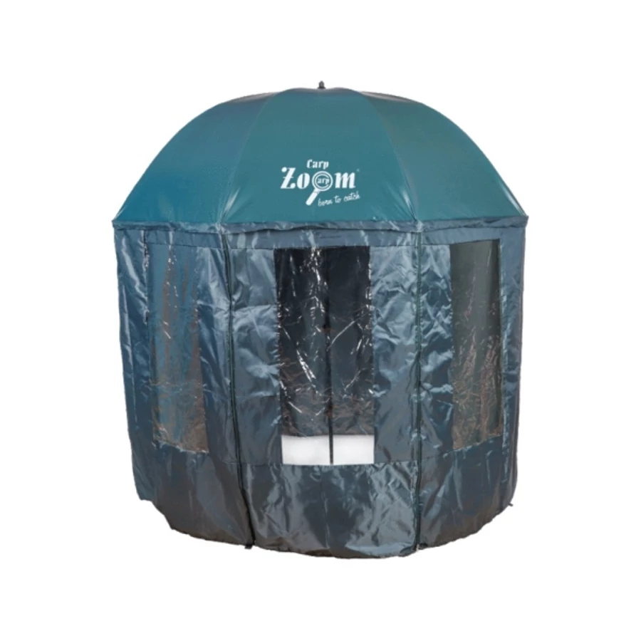 Az ily módon felállított ernyő véd a széltől és az oldalirányból beverő csapadéktól is, miközben a horgászbot az átlátszó felületeken keresztül szemmel tartható.