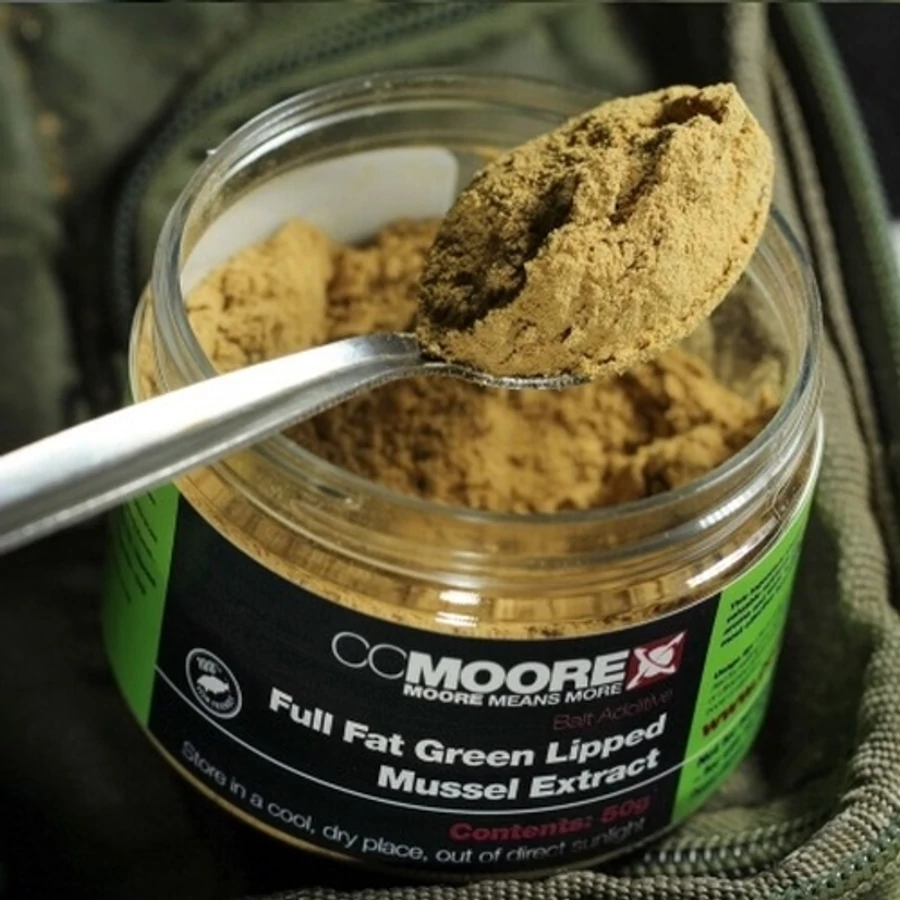A Green Lipped Mussel Full Fat, az eredeti, kiváló minőségű Újzélandi zöld ajkú kagylókivonat teljes zsírtartalmú változata. Kétségkívül minden idők egyik legjobban bevált por alapú adalékanyaga. Népszerűsége már évtizedek óta töretlen, hisz rengeteg kifogott kapitális pontyot köszönhettek ennek a különleges tulajdonságokkal bíró természetes kivonatnak a pontyhorgászok világ szerte. Minden csalinak fenomenális módon megnöveli a vonzerejét. A Zöld aljú kagyló kivonat tápanyagban gazdag élelemforrást, telítetlen zsírsavakat, esszenciális aminosavakat, B-vitaminokat, kalciumot, káliumot, magnéziumot magas százalékban tartalmaz, amely a pontyok életműködése szempontjából óriási jelentőséggel bír. A zsírmentes változathoz képest sokkal több ízt és aromát tartalmaz, ezáltal a csalinak még inkább megnöveli a természetes jellegét. Rendkívül magas természetes betain tartalommal, jellegzetes ízzel és illattal rendelkezik. Természetessége révén adagolásának felső határa nincs, még akár 100g/kg-ig is elmehetünk. A bojlimixek kihagyhatatlan adalékát képezi. Minden esetben a száraz alapmixhez tegyük! Megnövelt zsír és olajtartalma miatt a késő őszi és a téli időszakokban lehetőleg ne használjuk! A csalikban rövid és hosszútávon is egyaránt kifejti hatását.