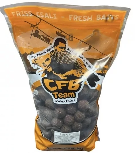 Egy igazan fűszeres, csípős bojli, mely olvadástól használható amíg a szezon tart. A Red Army bojli alapját vízben oldódó fehérjék, hallisztek, egyéb állati fehérje kivonatok valamint a saját készítésű rendkívül vonzó fűszerkeverék egészíti ki. A bojlival való első találkozáskor már érezni lehet a felhasznált anyagok minőségét, azt a fűszeres, csípős ízt. Mint minden CFB bojlit, a Red Army golyókat is száraz, hűvös helyen ajánlott tárolni, napfénytől védetten, így sokáig megőrzik frissességüket.