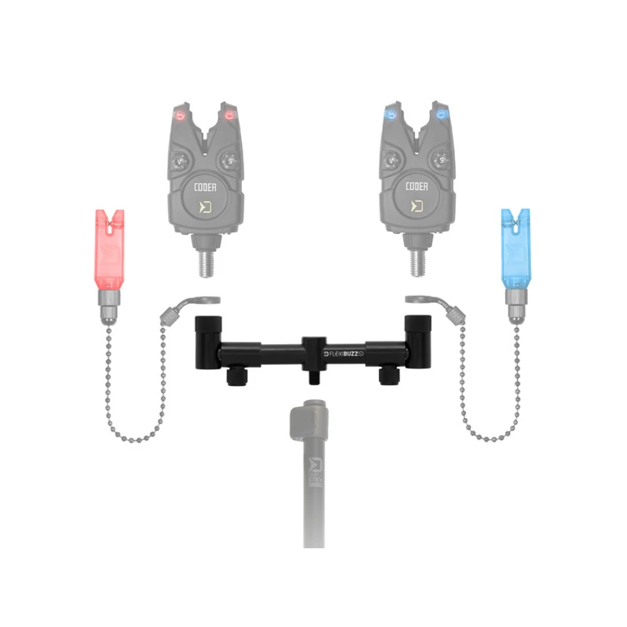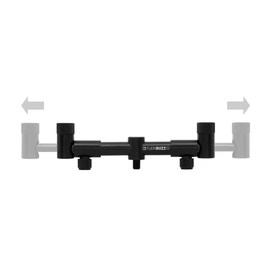A karok alul laposra vannak vágva, így a rögzítőcsavar meghúzásakor a helyükön maradnak és nem fordulnak el. A felső menetek anyákkal vannak ellátva annak érdekében, hogy bármilyen típusú kapásjelzőt vagy botvillát pontosan egy síkba lehessen állítani a buzz bar-ral. A FlexiBUZZ erős alumíniumból készül, tartós fekete porbevonattal.