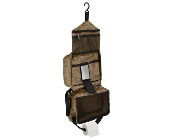 A Delphin Area NICE Carpath egy elsősorban higiéniai kellékekre tervezett táska. Mostantól az összes higiéniai felszerelését egy táskában hordhatja, és mindig kéznél lesznek. A táska praktikus tépőzárral van ellátva, amelyet egy műanyag kampóval egészítenek ki, amely lehetővé teszi a táska felakasztását a sátorban akár egy ágon. A másik véghez tépőzáras hevedert helyezünk, amelyet a WC-papír tekercs közepén áhuzunk és összekapcsolunk. Ezután probléma nélkül letekerheti a WC-papírt. Belül egy WC-papír zseb és egyéb praktikus tárolórekesz található, amely cipzárral bezárható. A középső részben 3 válaszfal található, ahol például fésűt, csipeszt, ollót és mást tárolhat. Van benne még egy kis tükör (5.5x8cm) műanyag fedéllel, tépőzár segítségével rögzítve van a táskához, és szükség esetén kivehető. Külső részén található egy fogantyú a könnyebb szállítást segítve.