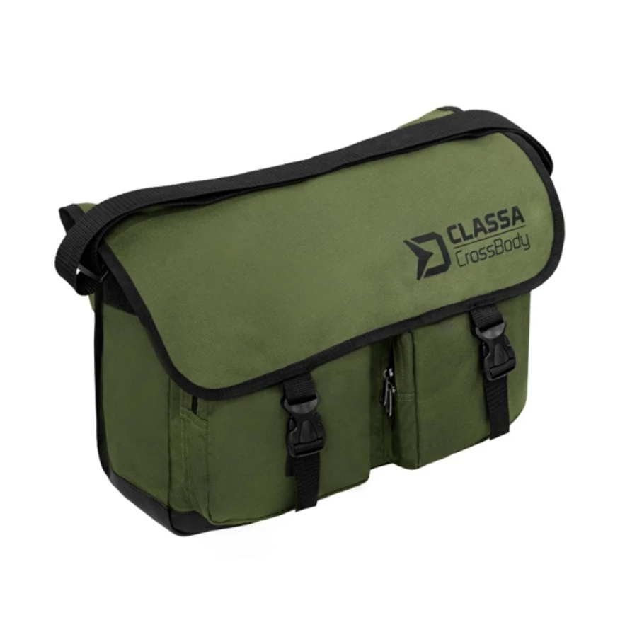 Univerzális és praktikus „cross body” táska, amely alkalmas minden horgász, vadász számára, de a mindennapi használatra, akár munkába, iskolába. A belső tér elegendő helyet biztosít a különféle kiegészítők tárolásához és szállításához. Ezen kívül van egy második cipzáras, fekete zseb, amelynek köszönhetően hatékonyan szétválaszthatja a dolgokat a táska belsejében. A CLASSA CrossBody elöl két külön zsebbel is rendelkezik, amelyek minőségi kettős cipzárral vannak felszerelve. A táskát sötétzöld színben tervezték, fekete elemekkel, például kapcsokkal, cipzárakkal, vállpánttal vagy logóval kombinálva. Az egész alsó rész és az oldalak 5 cm magasságig kiváló minőségű vízálló anyaggal vannak ellátva. Például nedves vagy piszkos talajon nem áll fenn a termék szennyeződésének, sérülésének a veszélye. Sokoldalúságának és kompaktságának köszönhetően különböző szférákban talál majd rajongókat.