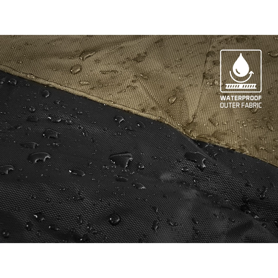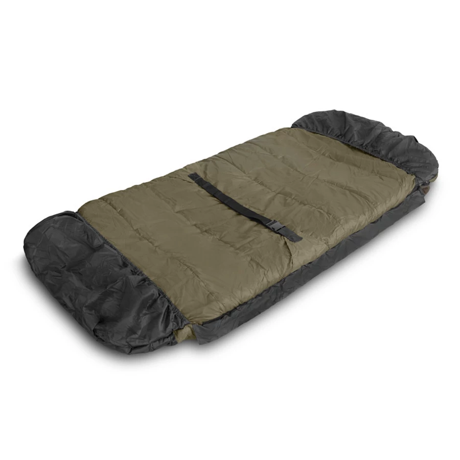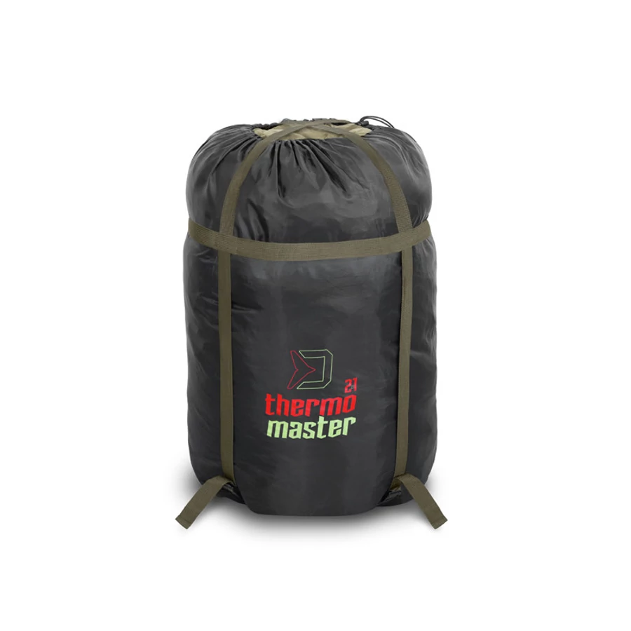 Tartós és vízálló külső szövetet használtunk, amely lehetővé teszi a szabadég alatt alvást esőben és nyirkos hideg éjszakákon is. Ezenfelül könnyen karbantartható, így egyszerűen letörölhető és szárítható. A hálózsák mindkét végén ujjakkal és egy erős, robusztus kapoccsal ellátott pánttal rögzíthető a horgászágyunkhoz, így a ThermoMASTER minden körülmény között stabilan helyezkedik el az ágyon.