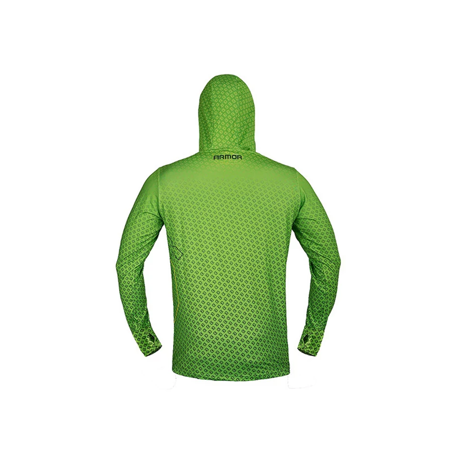 Tekintettel arra, hogy a fejünk nagyon gyorsan túlmelegedhet, a pulóver magas gallérral és kapucnival rendelkezik. Ráadásul az ujjai extra hosszúak, és hüvelykujj bujttatóval rendelkeznek, hogy a kezét is megvédje. Puha elasztikus anyagból készül, amely gyorsan szárad, ha horgászat közben elázna.