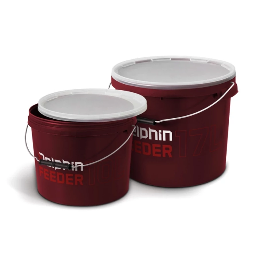 Fedeles FEEDER műanyag vödör ideális etetőanyag megkeverésére. Burgundivörös színben kapható felirattal. A vödör praktikus lehajtható fém fogantyúval rendelkezik, műanyag markolattal a jobb kezelhetőség érdekében. A vödör egy műanyag átlátszó fedelet is tartalmaz, amelynek köszönhetően még nyitás nélkül is láthatja, mi van benne, ami felborulás esetén megakadályozza a vödör tartalmának kiborulását és védi a keveréket a kiszáradástól.