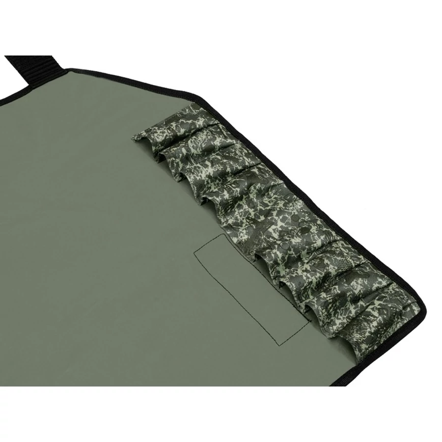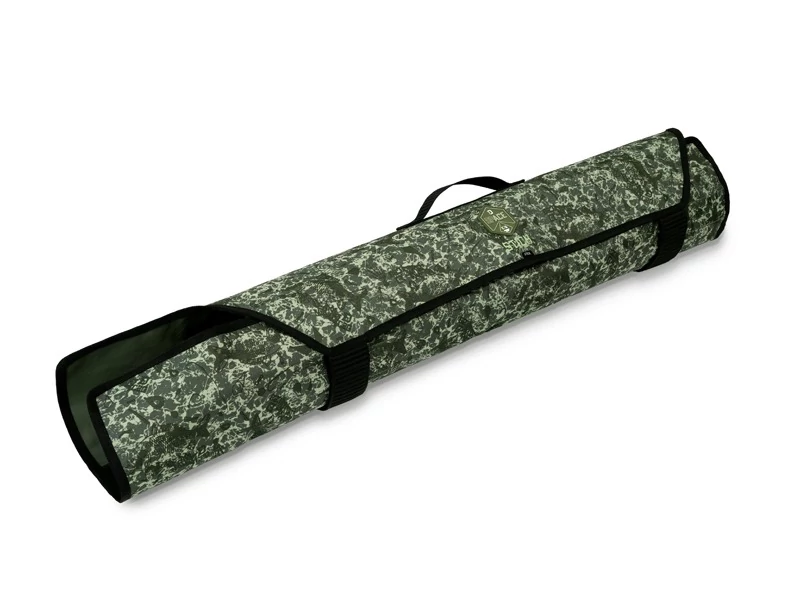 A Delphin STICK SPACE egy praktikus tok a leszúróknak vastag szövetből, mely belül gumírozott, így ez az oldal könnyen megtisztítható az esetleges szennyeződésektől. A tok úgy van kialakítva, hogy akár 8 darab vastagabb átmérőjű leszúrót is tárolhat benne, amelyek hegyesek mint a C-STICK vagy a D-STICK. Ezért a hegyek beillesztésére szolgáló alsó részt vastag és megerősített anyaggal láttuk el. Most már a leszúrók nem bökik ki a táskáját és nem sérülnek meg a táskájában tárolt dolgok. Egyszerűen feltekeri a tokot a leszúrókkal, és tépőzárral rögzíti, ami egyben védelmet is nyújt a karcolásokkal szemben is. A tok tetejére egy pánt van varrva, amely fogantyúként szolgál a szállítás megkönnyítésére.