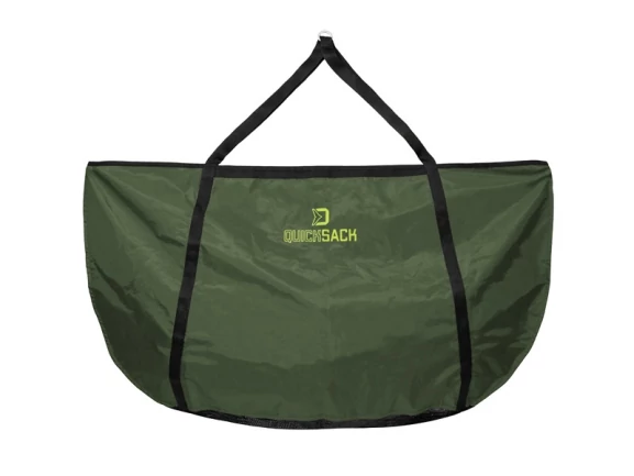 A QuickSACK erős vízálló anyagból készül, ráadásul a belső oldala gumírozott is. Ez a dizájn különösképpen hozzájárul a halak védelméhez a mérlegelés alatt. A gumírozott felület előnye, hogy kevesebb szagot enged ki magából, illetve lényegesen gyorsabban szárad. Az alsó oldalon egy finomszövésű háló található, amely a felesleges víz elvezetésére szolgál. A QuickSACK pántokkal rendelkezik, amelyek nemcsak az egész táskát erősítik, hanem két fémgyűrűvel is fel vannak szerelve, amelyek segítségével könnyedén a mérlegre akasztható az egész zsák. A táska alaptartozéka egy hordozható tok.