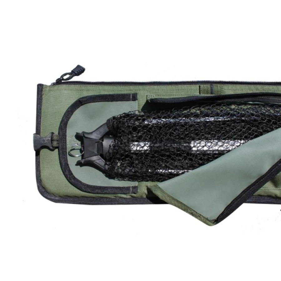A modell oldalsó extra hosszú cipzáras zsebe, szolgálhat például meritőhálók tárolására. Találhatóak rajta zsebek szorító szijakkal, amelyekben leszúró bottartók tárolhatóak. Ebben a botzsákban könnyen tárolhatja a nehezen tárolható horgászfelszerelést.