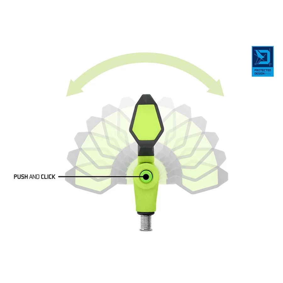 Elég széles ahhoz, hogy bedobás után a bot helyzete könnyen változtatható, a spicc optimális görbülete érdekében anélkül, hogy túl sok zsinórt kellene feltekernie. Ez a bottartó erős anyagokból készül, így nem sérül vagy karcolódik meg könnyen. Speciális formájának köszönhetően a bot még agresszív kapások esetén is a helyén marad. Felülete gumis anyaggal van bevonva, amely megvédi a botokat a sérülésektől. Univerzális menettel rendelkezik, amely kompatibilis az összes szabvány karral, tartóval és leszúróval. A tartó szárán lévő gumis rész megakadályozza annak elfordulását. A Flexi két bottal használható.