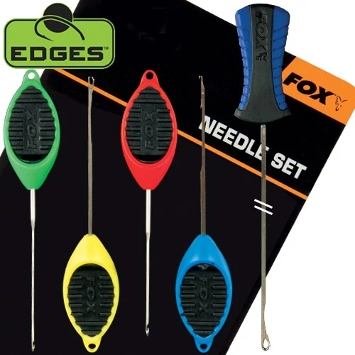 Fox Edges Needle Set - Fűzőtű készlet. A FOX fűzőtűi megszokottól eltérő műanyag fogórésze jól illeszkedik az ujjak közé, a bordázott felülete megfelelő fogást biztosít. Több féle fűzőtű, mindenféle csali fűzésére, és szerelék összeállításánál használhat. Tartalma 5db különböző fűzőtű.