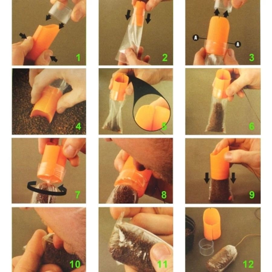 Használatával szükségtelen PVA szalaggal elkötni a PVA zsákot. Egyszerűbbé teszi a PVA zsákok elkötését, mint valaha. Az egyedülálló eszköz segítségével megtölthetjük és el is köthetjük a PVA zsákot