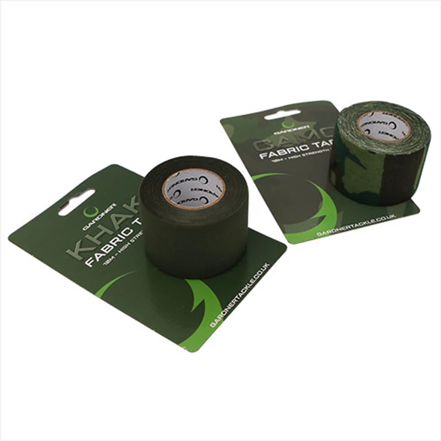 Gardner Fabric Tape (10m) Camo - terepszínű ragasztószalag - A Gardner nagy szilárdságú szövetszalagja ideális a legkülönfélébb felhasználási célokra, például leszúrók, botvégek, dobozok stb. javítására/takarására. Kétféle kivitelben kapható, terepmintás és Khaki zöld, amelyek matt tulajdonságaival együtt tökéletessé teszik a környezetbe való beleolvadást.