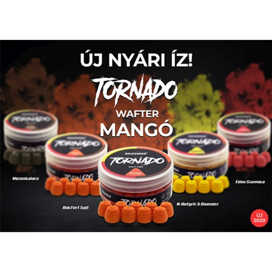 A Haldorádó 2020-as termékfejlesztései között számos izgalmas újdonság található, azonban a Tornado Wafter talán mind közül kiemelkedik, különleges, egyedi megjelenésével és nagyfokú attraktivitásával! Ezek a csalik füstölnek is, látványos színt és intenzív aromát adnak ki magukból. De az sem mindegy, hogy mennyire?! Több cég csalija olyan, mint egy atomrobbanás. A saját tapasztalatunk azt mutatta, hogy ezek finoman szólva sem előnyösek, azt nem mondom, hogy menekül tőle a hal, de sokkal kevesebb halat adnak, mint a szerényebben, de folyamatosan „vérző” csalik. Ez a csali is dolgozik, de diszkréten, pont annyira, amennyire kell és ezt akár órákon át tudja, bár szinte kizárt, hogy addig érintetlen maradjon! 4 olyan színben és hozzá passzoló ízben hoztuk forgalomba, amelyek nekünk kiemelkedően jól teljesítettek. Ezek az Édes Szamóca, piros színben, N-Butyric & Ananász, sárga színben. Van még két különleges, nem megszokott csali a családban: Rokfort Sajt, amely egy büdös sajt aromát kapott és narancssárga színben pomázik. Végül pedig itt van a Mézeskalács, barna színben. A sajtos nem csak folyóvízen vethető be, azokon a gyakran horgászott tavakon okoz igazi meglepetést, ahol a szokásos csaliktól már menekülnek a halak.