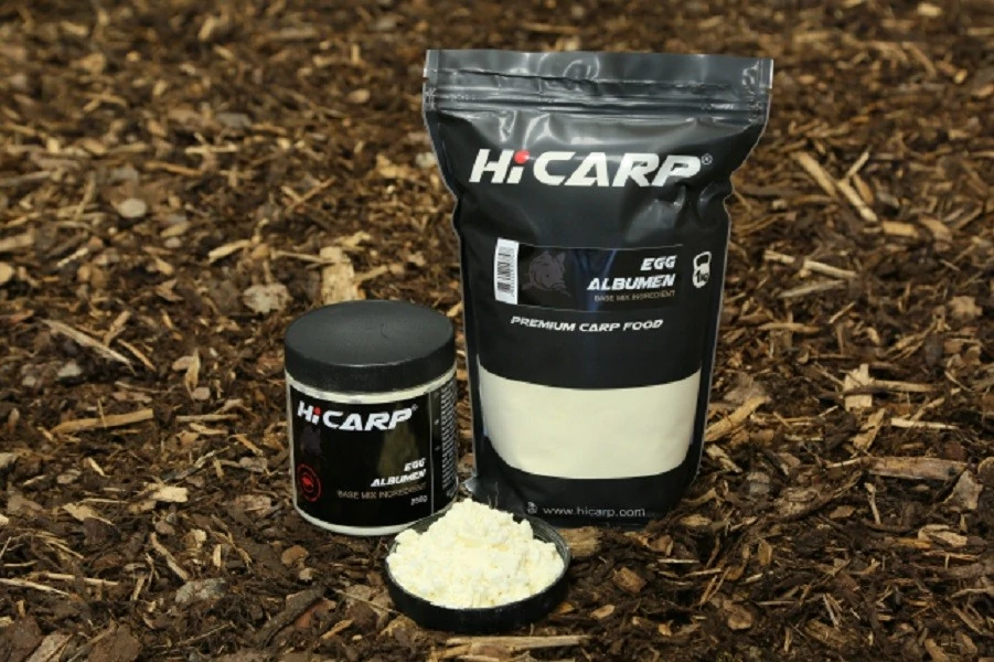 HiCARP Egg Albumen 250G/1KG - tojás fehérje por 2 féle kiszerelésben - Az Egg Albumen a tojásfehérje porított változata, amely egy különleges gyártási technológiával készül. A HiCARP által forgalmazott termék kizárólag élelmiszeripari tisztasággal és kiváló minőségi mutatókkal rendelkezik. Fontos és fő összetevője minden típusú bojlimixnek. Kiváló kötőhatással rendelkezik, amely a csali emészthetőségét és tápértékét nem befolyásolja. Rendkívül magas, több mint 78%-os fehérjetartalommal rendelkezik. Fantasztikus hatása már 50g/kg-nál is érvényesül. 100-200g/kg-nál egy olyan nagy keménységgel rendelkező bojlit készíthetünk, amely ellenáll a nem kívánatos halfajok és az egyéb vízi élőlények rohamának.