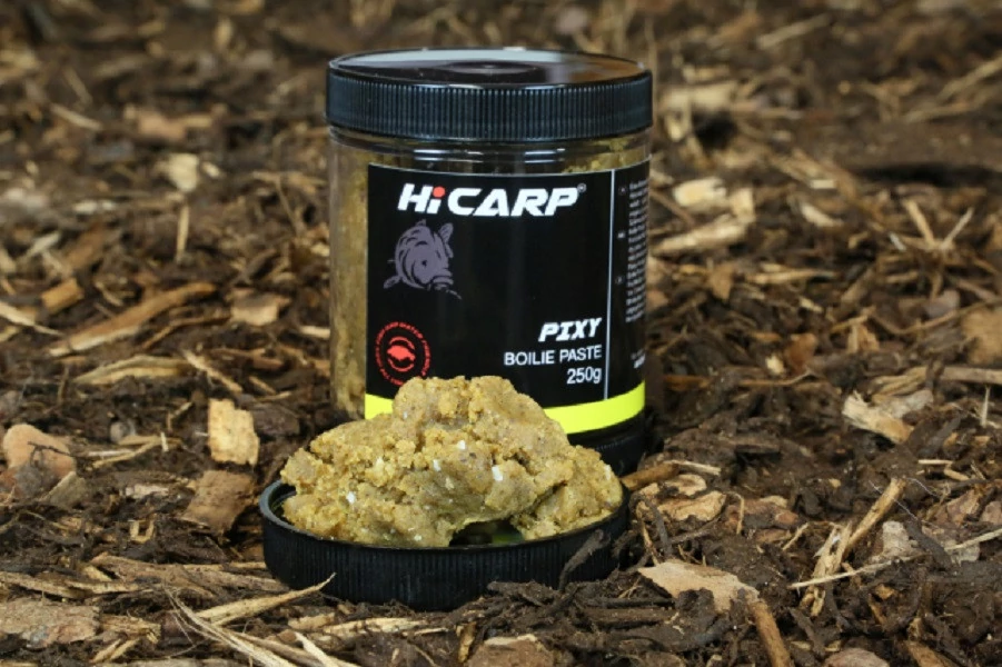 HiCARP Pixy Bojli Paszta 250G - bojli paszta - A PIXY Boilie Paste egy lágy állagú és könnyen formázható nedves paszta. Íze, illata és beltartalma tökéletesen megegyezik a PIXY kész bojlival. A belsejében lévő természetes attraktorok a vízbeérkezés pillanatában azonnal oldódni kezdenek, így rendkívül gyorsan kifejti csalogató hatását. A különböző horogcsalik köré gyúrva rendkívüli módon megnöveli azok vonzerejét. Kiválóan harmonizál a PIXY kész bojlival illetve az PIXY Dipped Hook Baits-el de természetesen bármilyen más édes vagy gyümölcsös bojlival együtt is használható. Különleges és egyedi, krémes-édes, mogyorós, vaníliás aromája a pontyokra óriási hatást gyakorol. Egész évben eredményesen használható, különösen a hideg vízi horgászatok alkalmával. Ólomra gyúrva is rendkívül eredményesen alkalmazható!!!
