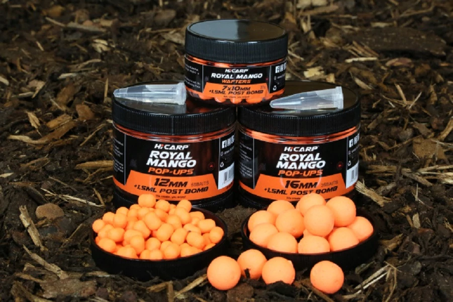 HiCARP Pop Up Royal Mango - mangó ízesítésű lebegő horogcsali 5 féle kiszerelésben (8mm, 10mm, 12mm, 14mm, 16mm) - A Royal Mango Pop Up az élénk narancssárga színével és különleges íz és illatvilágával rendkívüli hatást gyakorol a pontyokra. A fenomenális lebegő bojli lelkét egy speciális, nagyrészt mangó ízből és illatból álló aromakoktél adja, valamint egy kis édeskés hátillata van, ami igazán érdekessé teszi. Ezeken kívül tartalmaz esszenciális olajokat, n-butiryc acid-ot (vajsav), valamint betaint, így egy egyedülálló, különleges jelleget kapott. A Royal Mango kiválóan alkalmas az úgynevezett Single Hookbaits, azaz egyetlen egy szem csali etetés nélküli használatához is, de süllyedő bojlival hóember kombinációban is kiválóan alkalmazható.