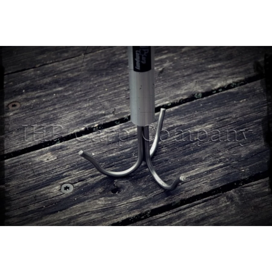 Az új ICC Háromágú horog adapter a pontyhorgászat teljesen új innovatív vonalát képviseli, hiszen olyan új technikák sajátíthatók el, melyek eddig elképzelhetetlennek tűntek. Nagy távolságok húzásakor könnyen megtalálhatóak az élesbe helyezett zsinórok, melyeket egyenként, sorban a csalihoz közeli zsinórrészt felhúzva, majd újracsalizva pottyanthatjuk vissza éles szerelékeinket a megfelelő helyre, ezáltal egy be-kimenetellel zárhatjuk le négy bot behúzását, akkumulátort és időt kímélve. Képzeljük csak el, hogy egy igazán nagy kiterjedésű vízterületen akár 300-500 méterre az aljzaton fekvő végszerelékeink egyesével történő frissítése helyett milyen könnyedén, időt és energiát megtakarítva dolgozhatunk ezzel az eszközzel. A keresés nagyobb mélységekben kötéllel történik (a termék menetvédő sapkájának kialakítása lehetővé teszi, hogy beleköthessünk vastag erős kötelet), sekélyebb víz esetében az ICC Multifunkciós medertapogató rudazatra szerelve (a menetvédő sapka letekerésekor láthatóvá válik a terméken található külső menetes rész, amely segítségével betekerve rögzíthető a medertapogató rudazaton) precízebb kutatást tesz lehetővé. Minden esetben az éles zsinórok futási irányával merőlegesen az aljzaton végigcsúsztatva keressük zsinórunkat. A Treble Hook adapter kialakítása célirányosan zsinórkeresésre hivatott, tehát például egy szakadást követően az eszköz segítségével könnyedén megtalálhatjuk elveszett zsinórunkat, mely nem zavarhatja többet horgászatunkat. Anyaga INOX, műanyag, valamint Alumínium. tisztán tartva hosszú távú,- megbízható társ lehet a problémás szituációkban.