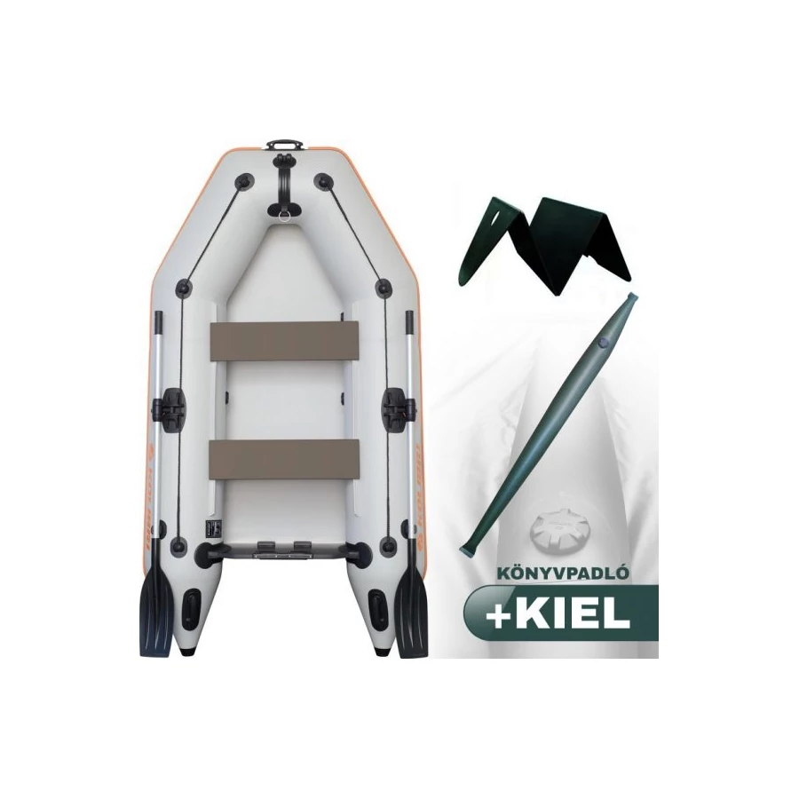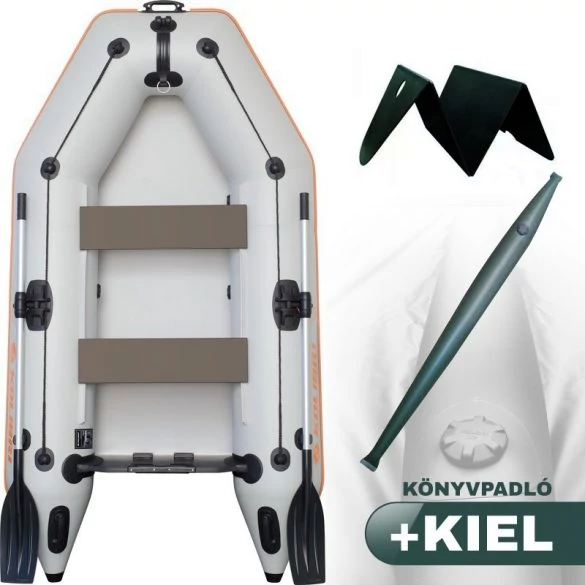 A Kolibri KM-280D - fartükrös gumicsónak teljes merev könyvpadlóval, mely a Kolibri cég Standard gumicsónak típusa. A harmadik Standard méret a Kolibri palettáján. A padló anyaga impregnált rétegelt vízálló lemez.