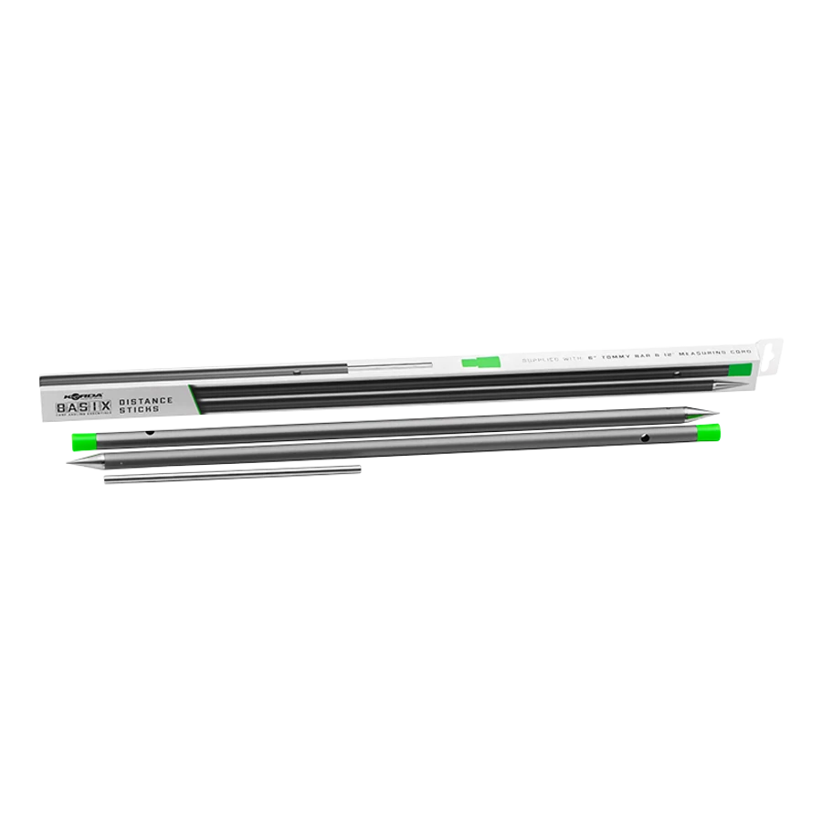 A BASIX Distance Stick rozsdamentes acél hegyük van, amelyek könnyen lehetővé teszik a földbe szúrást és tartalmaznak egy pontosan 12 láb hosszú zöld zsinórt, hogy minden egyes alkalommal könnyen azonos távolságra legyenek egymástól. Egy T-rudat is adunk hozzá, annak biztosításához, hogy szinte bármilyen talajba könnyen belemenjenek. A BASIX távolságmérő botok stílusos, szürke eloxált alumíniumból készülnek, felül élénkzöld végzárókkal a jobb láthatóság érdekében - különösen gyenge fényviszonyok mellett, vagy ha éjszaka fejlámpával használják őket. A kupakokat le lehet csavarni, hogy a T-rudat belül lehessen tárolni, hogy ne veszítsék el, amikor nincsenek használatban.