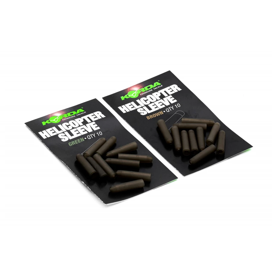 A Korda Helicopter Sleeve Green/Braun - helikopter gumiütköző zöld vagy barna színben, nagyon tartós és minőségi helikopter gumiütközők, melyek a tökéletes álcázhatóságot biztosítják a mederben. A belső furat kúpos kialakítású, így a forgókapcsok, kötések biztonsággal, sérülés nélkül rejthetők el.