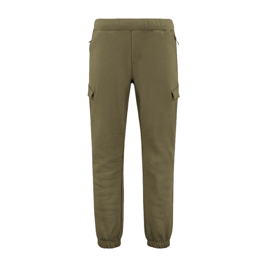 60%/40% Pamut-Polyester-Fleece, 320g/m2, zipzáros zsebek, cargo zsebek, elasztikus nadrág kötő spárgával, fekete zsebek tépőzárral.