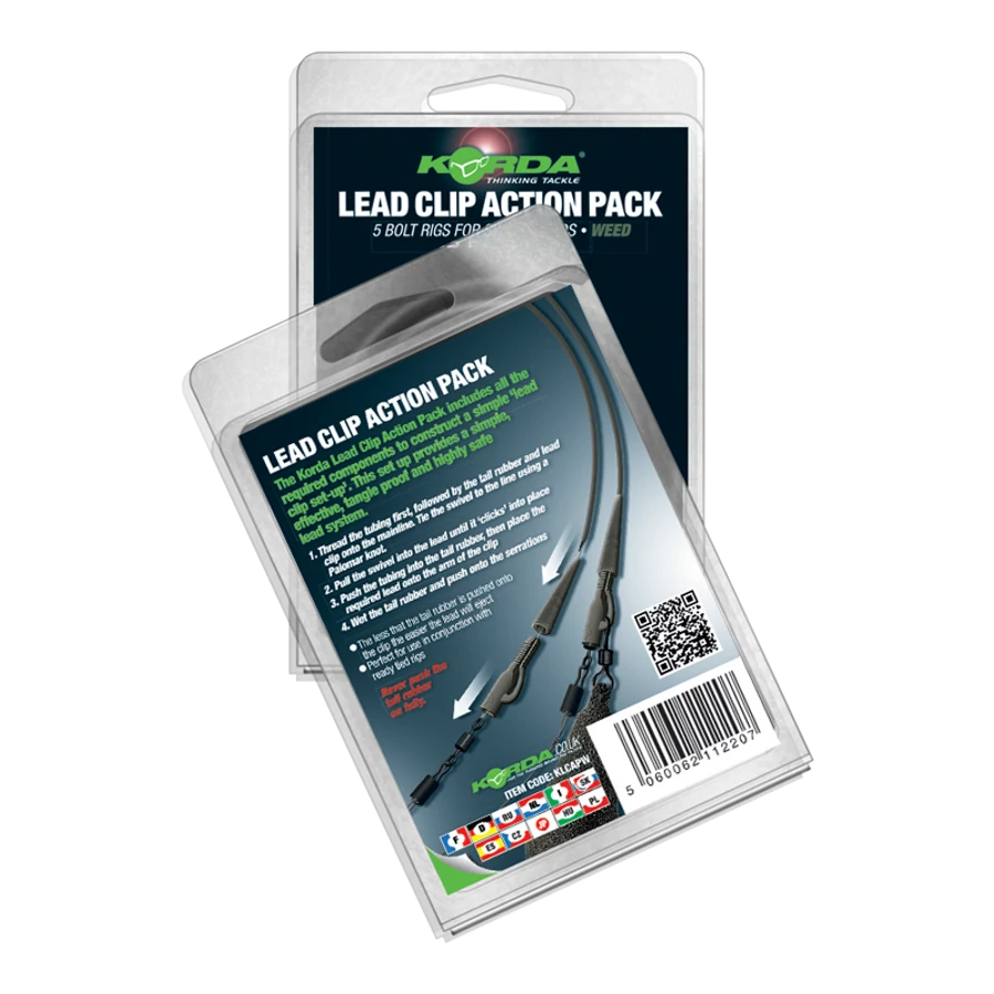 A Korda Lead Clip Action Pack Silt/Weed/Gravel/Clay - komplett ólomklipszes szerelék 5 db-os szett 4 féle színben, egy csomag, amely tartalmazza az összes olyan összetevőt, amely segít a biztonságos ólomkapocs-rendszerek kialakításában, amelyek elengedhetetlenek a gazos vagy gubancos vizek horgászatakor.