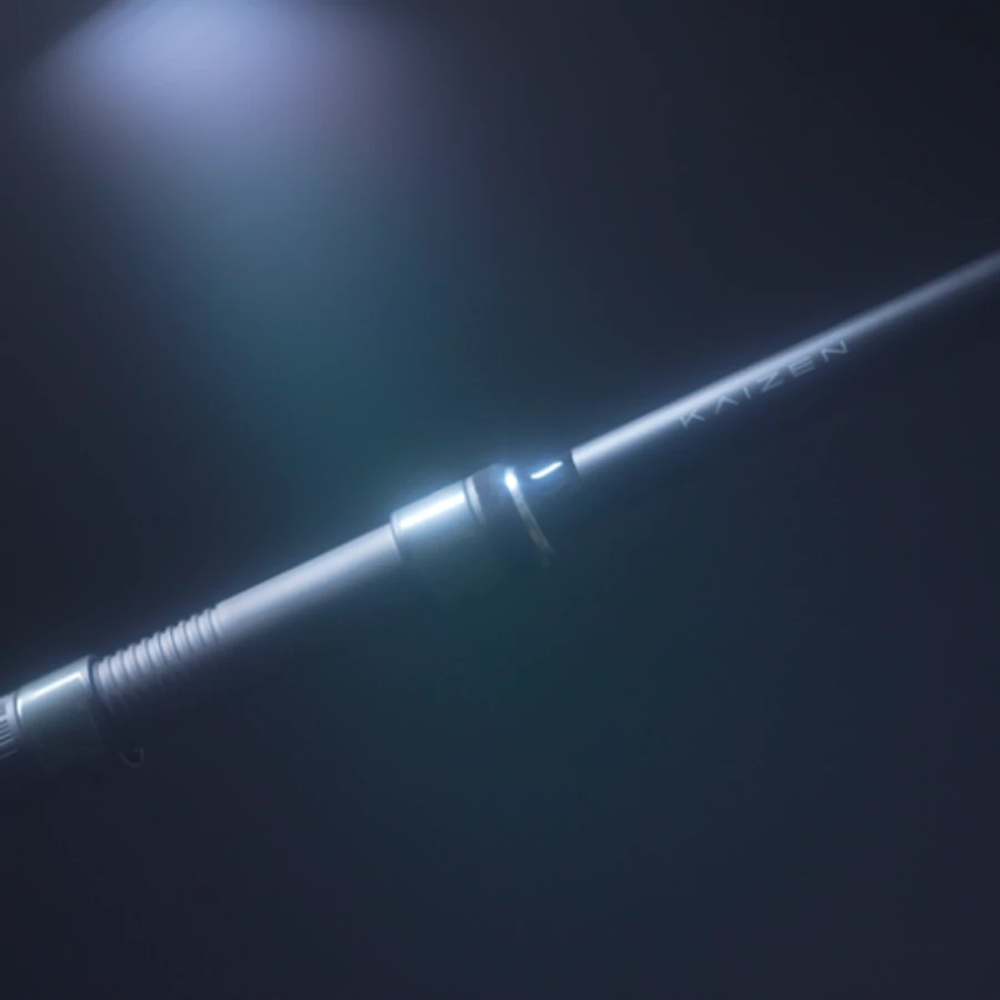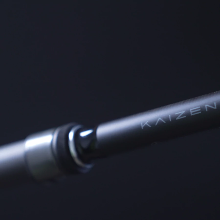 A Kaizen termékcsalád több mint négy éve fejlesztés alatt áll, és úgy jött létre, hogy úgy éreztük, hogy olyan csúcskategóriás botokat tudtunk kifejleszteni, amelyek még a piacon lévőknél is jobbak. Minden csúcskategóriás Kaizen Platinum botunk gyorsan elkeskenyedő blankra épül – ami azt jelenti, hogy a bot kúpossága következetesen végigmegy az elejétől a végéig. Ez nagyon lenyűgöző botokat eredményez. Természetesen extrém terhelés alatt, például dobáskor a bot teljes egészében dolgozik. Ezeknek a botoknak a megjelenése nem az egyetlen olyan tényező amely egyedülállóvá teszi őket, ugyanolyan fontos a gyártási folyamat során használt carbon típusa is. Kiváló minőségű japán karbon, amit a kezünkbe véve egyből érezhetünk is! Ezt a ZERO90 karbont mindössze két rétegben és nagyon kevés gyantatartalommal használják, és ennek eredményeként könnyebb, merevebb blankok születnek. Természetesen nincs értelme az erejéhez képest hihetetlenül könnyű botot kifejleszteni, majd nehéz gyűrűket, vagy orsótartót használni, így a Kaizen teljes termékcsaládja könnyű Sea-Guide TDG gyűrűkkel van felszerelve, 50 mm-es keverővel és 16 mm-es spicc gyűrűvel. – lehetővé teszi, hogy a zsinór a lehető legkisebb ellenállással pörögjön le orsónkról. Az orsót egy kiváló minőségű Fuji DPS orsótartó rögzíti, a markolat pedig teljes egészében japán zsugor markolattal készült – aminek köszönhetően jó fogást tesz lehetővé még akkor is, ha a keze vagy a bot nedves. Az alumínium borítás és a JAG által készített, maratott végzárókupak teszi teljessé a rendkívül kívánatos egyedi megjelenést. Danny Fairbrass, aki évek óta foglalkozik bottervezéssel és a Kaizen sorozat egyik mozgatórugója, így vélekedett: „Abszolút öröm a használatuk, olyan könnyűek, de erősek, nagyon könnyű gyűrűkkel, így a levegőben is oly könnyedén suhannak. Ráadásul gyönyörűen néznek ki.”