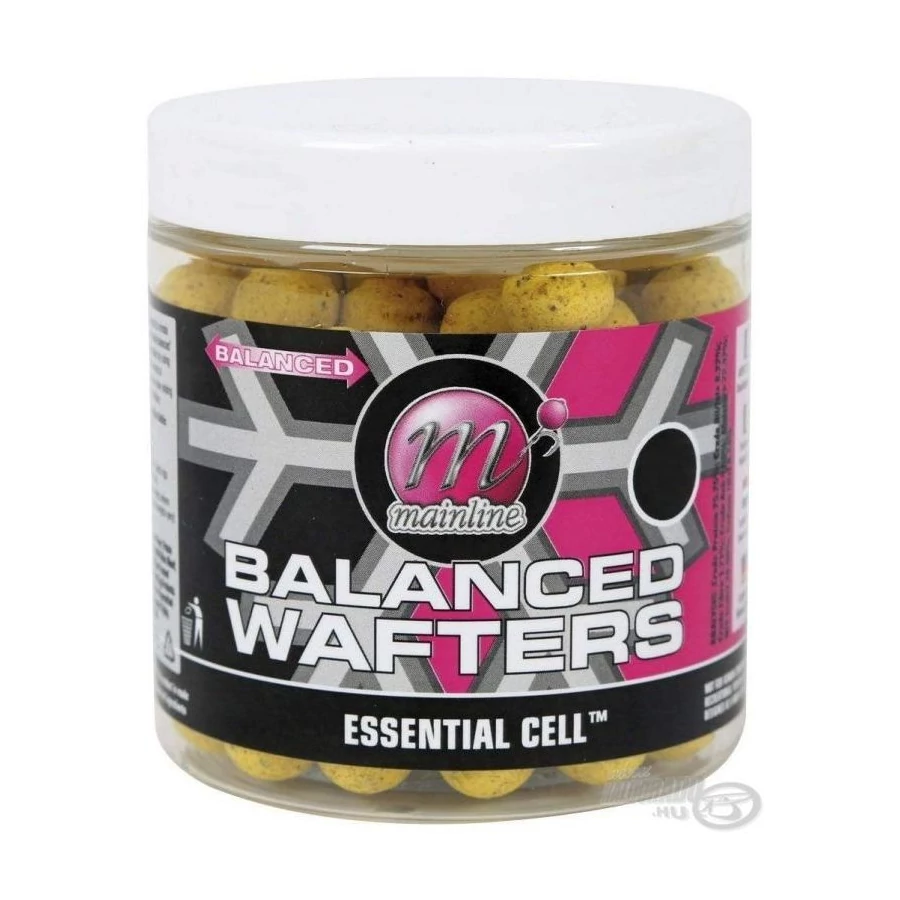 A Mainline High Impact Balanced Wafters 15mm/18mm Essential CellTM - kikönnyített horogcsali 15 vagy 18mm-es kiszerelésben, több ízben és színben kapható. A dupla erősségű íze és a kikönnyítésnek köszönhetően egész évben kiválóan alkalmazható, még a hideg téli hónapokban is életre kelnek. Az új “Wafter” horogcsaliaink úgy lettek fejlesztve és tesztelve, hogy a modern pontyhorgásznak megadjuk a lehetőséget arra, hogy gyorsan és könnyen egy tökéletesen kibalanszírozott horogcsalit tudjanak bevetni. Egyszerűen húzza a csalit a hajszálelőkére és már a szerelék súllya elég arra, hogy a Waftert tökéletesen kibalaszírozza. Ezek a csalik a High Impact sorozat aroma anyagjaival és adalékaival lesznek gyártva - az eredmény egy magas minőségű nagyon attraktív horogcsali.