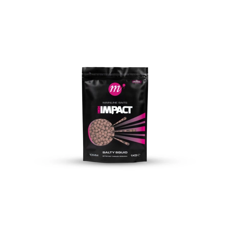 A Mainline High Impact Boilies Salty Squid - 20mm 1 kg-os bojli (tintahalas), a sok éves tapasztalatoknak és kutatásoknak köszönhetően a Mainline néhány évvel ezelőtt sikeresen bevezette a High Impact bojli sorozatát. Az egész sorozat magas minőségű alapanyagokból, jól emészthető összetevőkből, csúcsminőségű attraktorokból és ismert Mainline aromákból áll. Amint a High Impact név azt sugallja, a csalik tele vannak minden jóval, amit egy horgász kívánhat. Ezáltal ezek a bojlik tökéletes azoknak a horgászoknak, akik szuper vonzó csalikat szeretnének, mely Európa-szerte minden vízen működik.