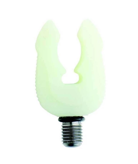 Masszív, rugalmas bottartó villa fluo színben, amely stabilan tartja botját az állványon.