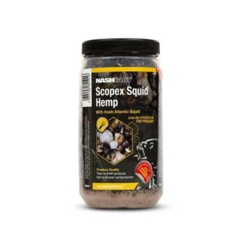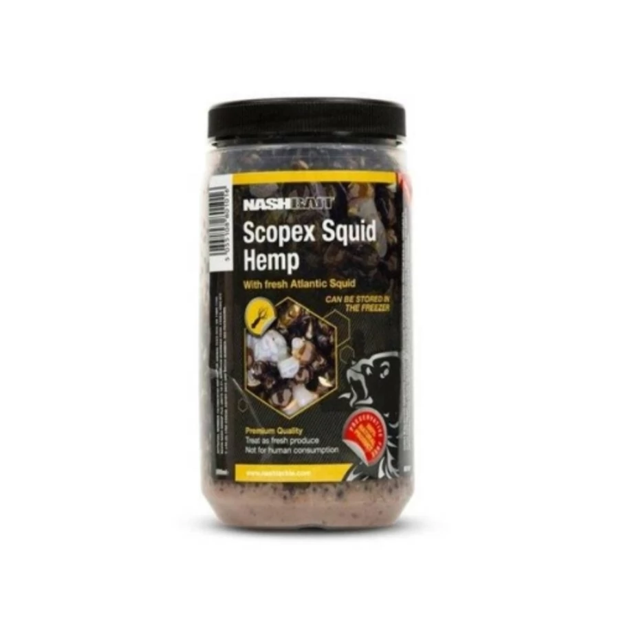 A legjobb minőségű, nagyméretű francia kendermag, a legendás Scopex Squid attraktorcsomaggal, melyet a Scopex No. 1, vörösmájolaj és édesítő alkot, plusz darált tiszta atlanti tintahallal felturbózva, egy természetes csavar végett.