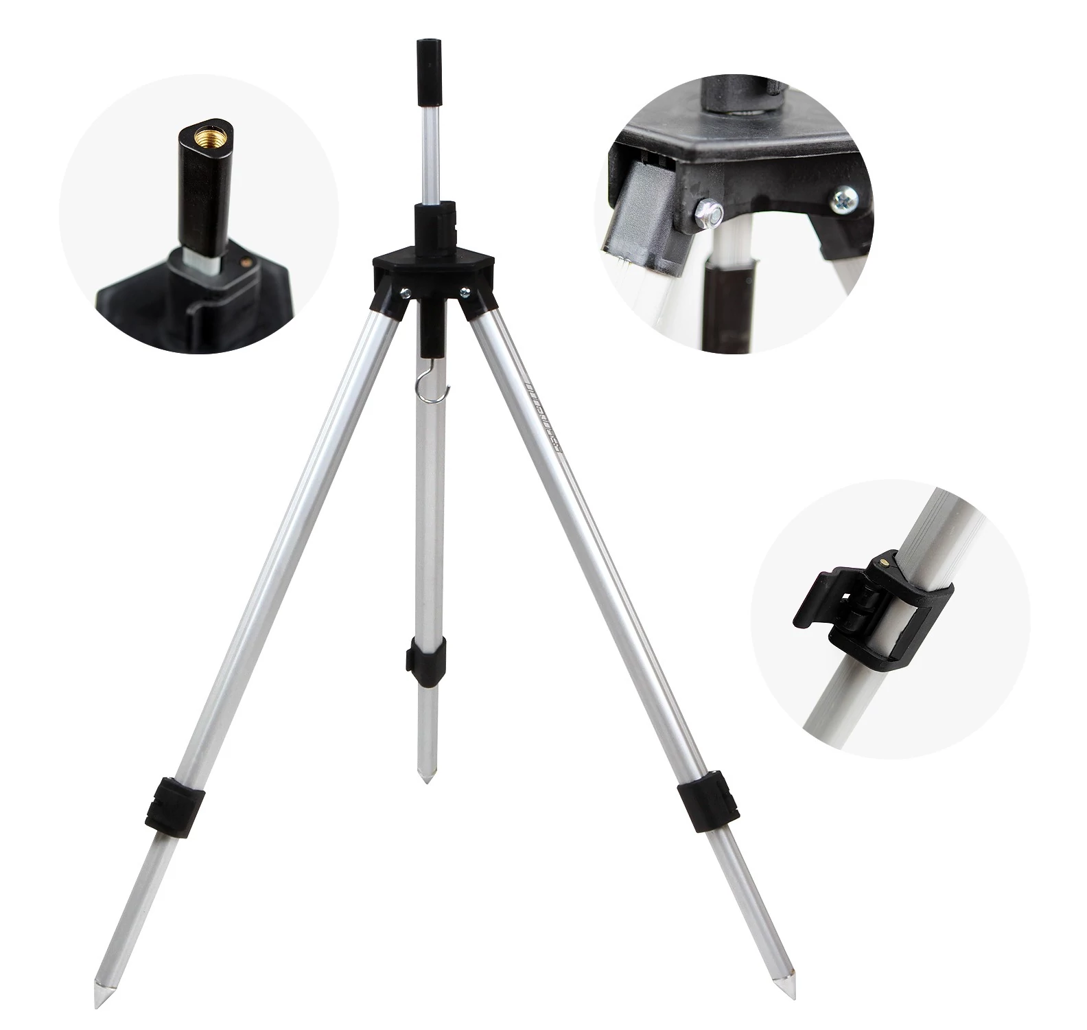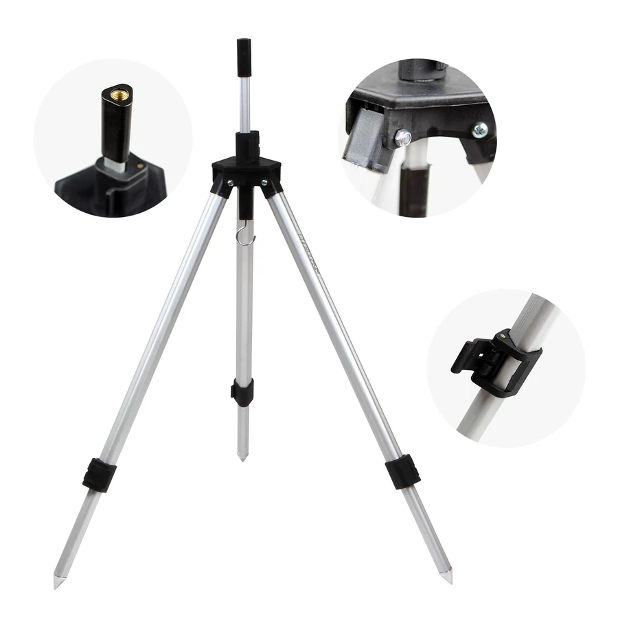 A tartórész menetes fejébe keresztartó vagy elektromos jelző csatlakoztatható. Lábai teleszkóposak, villámzárral rögzíthetőek.