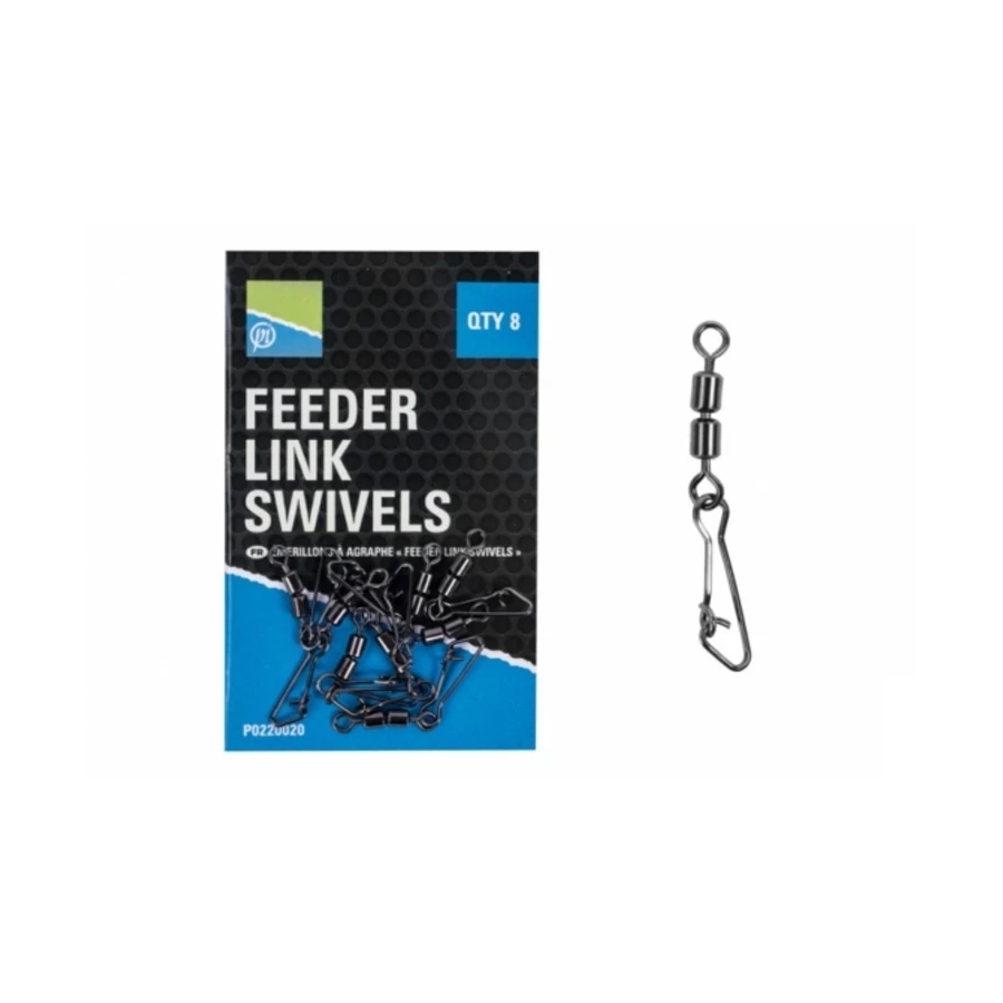 PRESTON DOUBLE FEEDER LINK SWIVELS dupla forgós kapocs, gyors etetőkosár cseréhez. Jól használható a Preston Link Swivel Protector Sleeve termékkel.