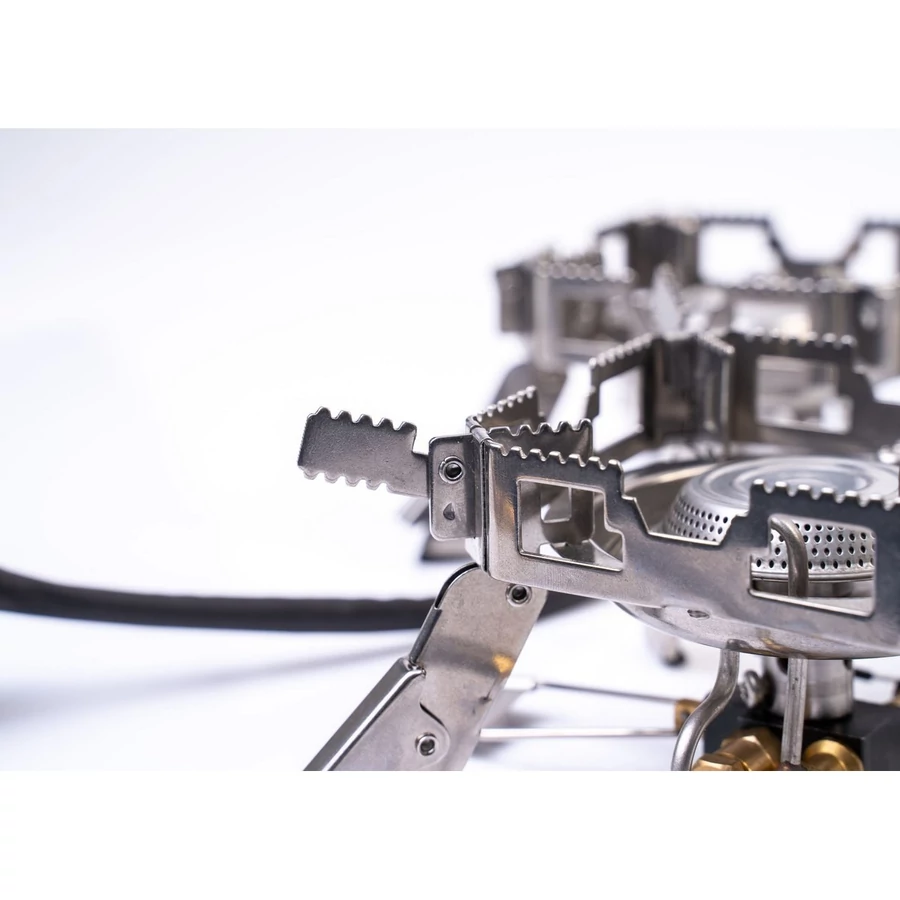 A RidgeMonkey rendkívül elismert, szuperstabil négyszögletes kialakításával, hihetetlenül alacsony súlypontjával és négy magasságban állítható összecsukható lábával a nagy teljesítményű Quad Stove Pro páratlan teljesítményt, stabilitást és sokoldalúságot nyújt. Teljesen új gázkondenzátorcsővel rendelkezik, amely biztosítja a hatékony gáz-felhasználást a leghidegebb körülmények között is. Távoli gázcsatlakozás és stabil kialakítás szinte minden terepen.