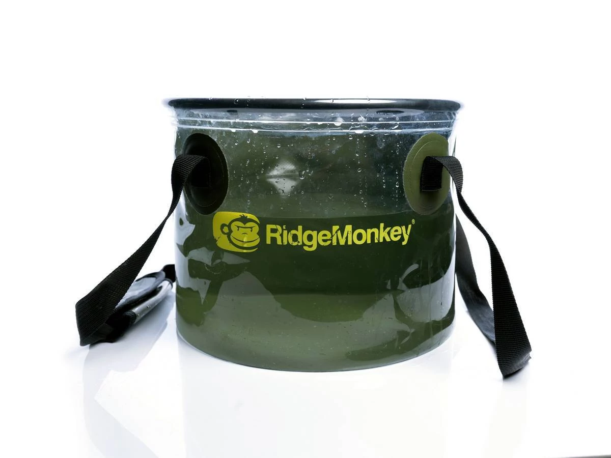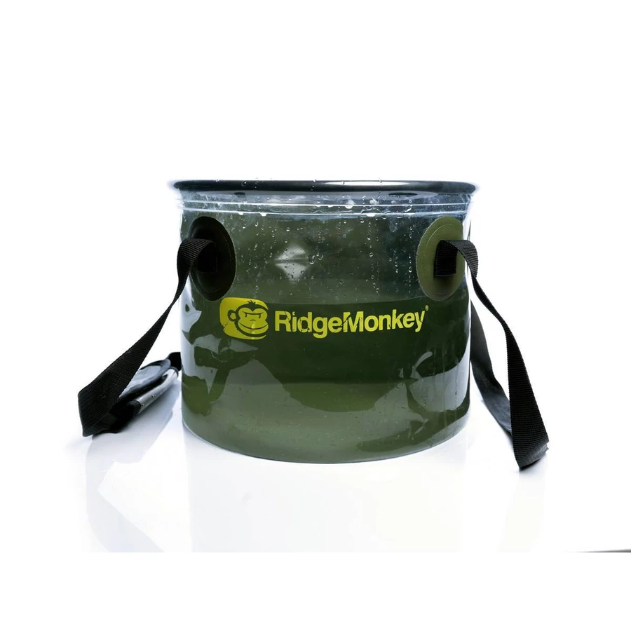 A RidgeMonkey Perspective Collapsible Bucket - átlátszó vödör 10 literes, praktikus és kompakt bármilyen kalandra könnyen elcsomagolhatod, így mindig lesz nálad egy vizesedény, amely minimális helyet foglal. Nagyon gyorsan bevetésre kész, egyszerűen csak nyisd szét és töltsd fel vízzel. Különféle dolgok tárolására, etetőanyag bekeverésére vagy italok lehűtésére is használhatod. Az átlátszó résznek köszönhetően mindig tudni fogod, hogy épp mennyi vizet tartalmaz.