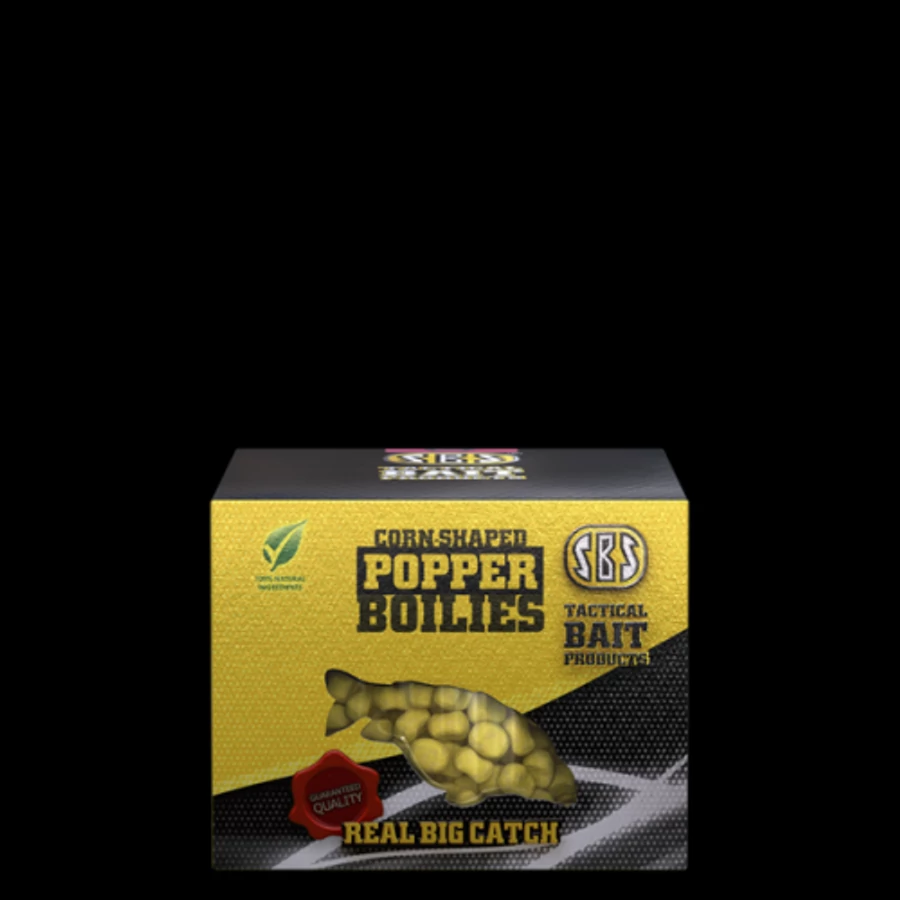 Ezek a kisméretű 8–10 mm-es kukorica formájú bojlik az SBS saját fejlesztésű különleges csalijai, melyeket egyaránt eredményesen használhatnak a finomszerelékes és a nagyhalas horgászok is. Az SBS a csali hatalmas sikerén felbuzdulva 7 féle ízesítésre bővítette a kínálatot! Kinézetre kukorica, de annál mégis több, hiszen beltartalma azonos egy kiváló minőségű bojliéval. Süllyedő (sinker) és pop up (popper) változatban is elérhető, ami számtalan variációs lehetőséget biztosít használata során. Rendkívül erőteljes illat jellemzi őket, melyet a magas N-Butyric (vajsav) tartalma tesz még ellenállhatatlanabbá a pontyok és amurok számára! A téli hónapokban a White Pepper Corn ízesítéssel fantasztikus eredményeket érhetünk el!