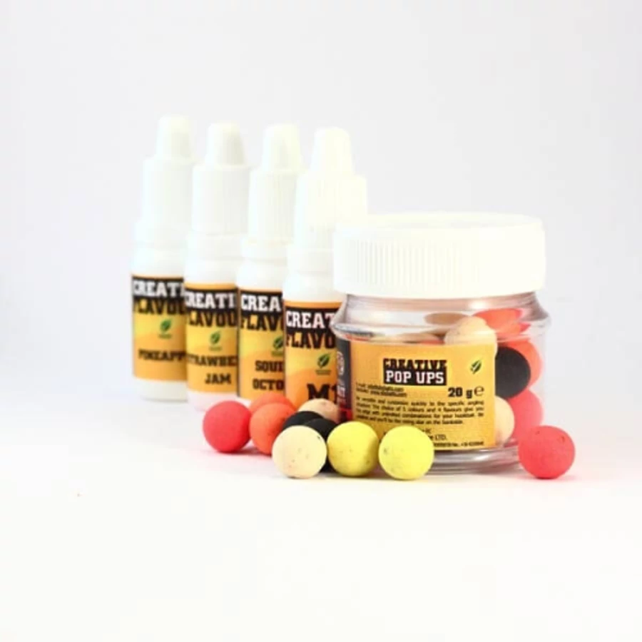 Legyél kreatív és alkalmazkodj gyorsan a körülményekhez! Az öt különböző színű (fehér, fekete, citromsárga, narancssárga, piros), natúr, ízesítés nélküli 10 mm-es pop up-ok és a dobozban található négyféle aroma segítségével (M1, Pineapple, Strawberry Jam, Squid & Octopus) szinte korlátlan mennyiségű horogcsali-variáció készíthető. A hideg napokon az óvatosan táplálkozó halakat a visszafogottabb színű horogcsalikkal és édes ízekkel ingerelhetjük kapásra, a nyári kánikulában viszont az élénkebb színű pop up-ok kerülhetnek elő a dobozból, amelyet erősen halas-büdös aromával ízesíthetünk! Akár többféle aroma is használható ugyanazon a horogcsalin, így egyedi ízekkel lehetsz nyerő a vízparton!