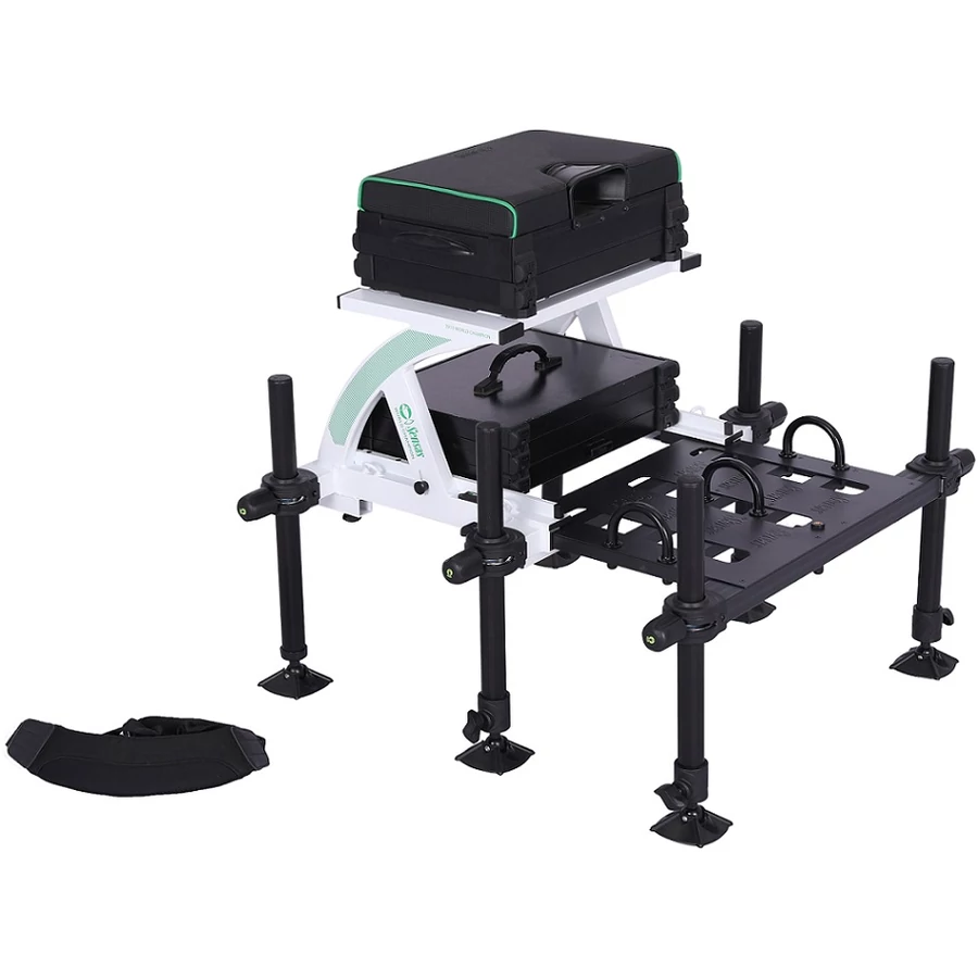 Erős és stabil versenyláda vázszerkezettel úszós és feeder horgászathoz. Többszintű tárolórendszer. Lehetőség szállítórendszer vásárlására.