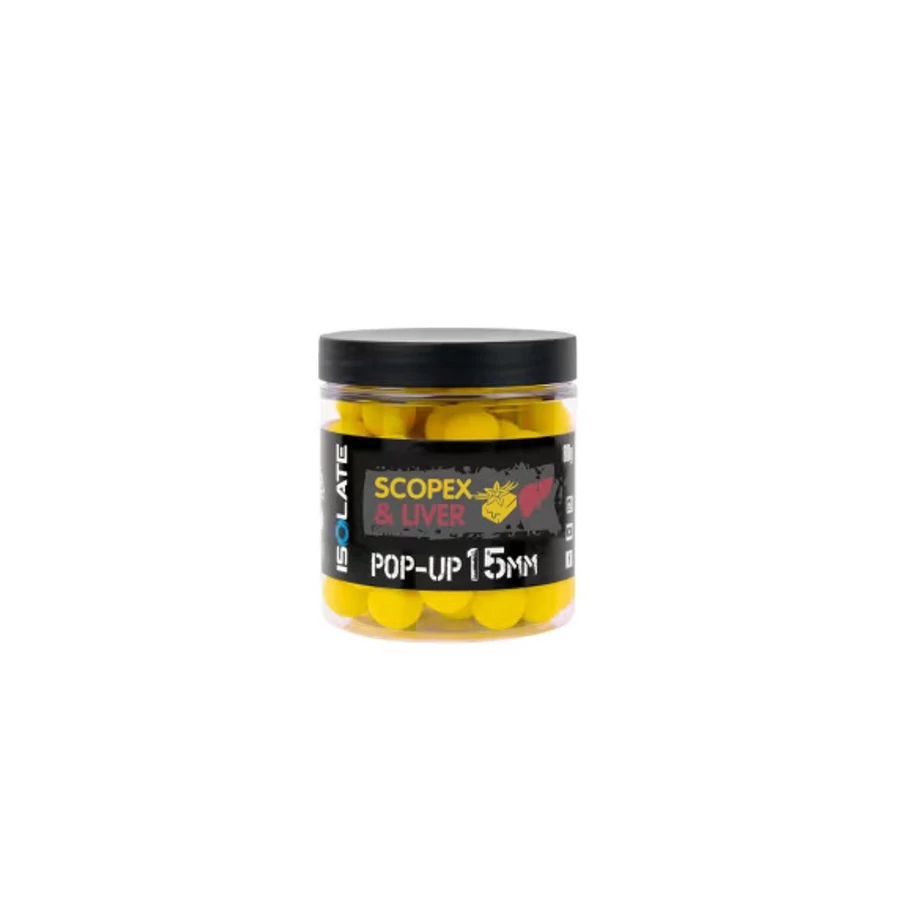 Az Isolate Scopex Liver Pop-up bojlik tökéletes horogcsalik az Isolate Scopex Liver Bojlikkal kombinálva, különösen, ha lebegő vagy kritikusan balanszírozott csalit szeretnél használni. A nagyon jól látható sárga szín önálló horogcsaliként is kiválóan működik szemcsés vagy pelletágy felett, vagy zig rigekkel és "hóember" szerelékekkel.