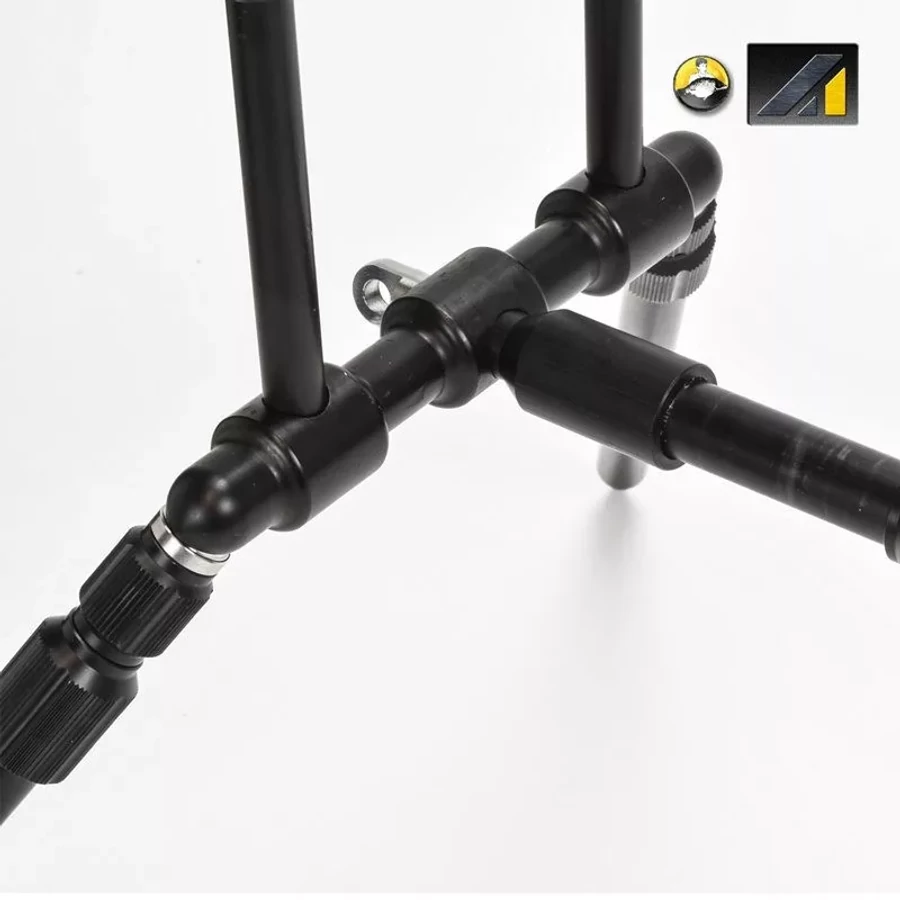A Solar Tackle A1 (Alumínium) Rod Pod a legendás P1 - saválló anyagból készült - bottartó rendszerek egy könnyebb és árban kedvezőbb változata. Egyedi tervezésének és számtalan állítási lehetőségének köszönhetően bármilyen talajon, kövezésekkel szegélyezett partszakaszokon pillanatok alatt stabilan felállítható. Széles tartományban rögzíthető központi részének és a kihúzható lábaknak köszönhetően az adott horgászhely lehetőségeit figyelembe véve az igényelt pozícióba tudjuk állítani botjainkat.