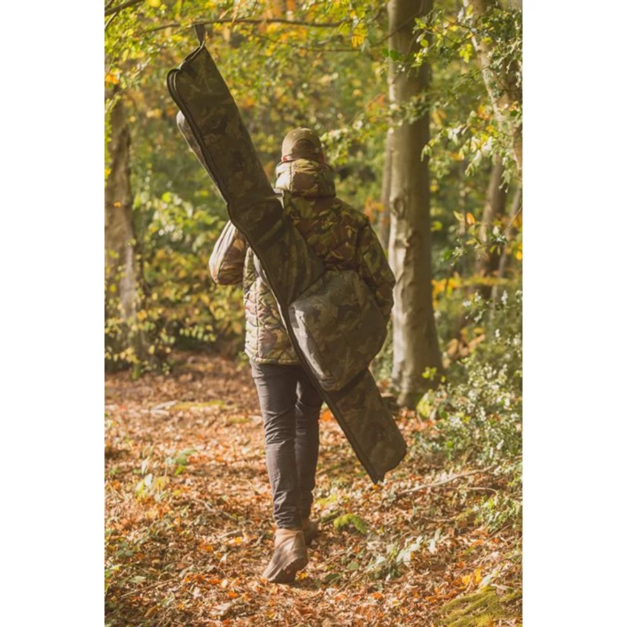 A Solar Tackle Undercover Camo 4 Rod Holdall 13ft - botzsák egy minden igény kielégítő, az értékes felszerelésünknek maximális védelmet biztosító botzsák. A terepmintázatú, extra erős vízálló alapanyagnak (600D), és a nagyméretű, szennyeződést jól tűrő húzózáraknak köszönhetően egy nagyon strapabíró, hosszú használati értékű botzsákot kapunk. Az értékes felszerelésünk védelmét pedig a teljesen párnázott belső rész garantálja. A botzsák belső részében tépőzáras rögzítő fülekkel és szivacsos elválasztó párnákkal elkülönítve három darab orsókkal felszerelt és három darab orsó nélküli botot tudunk elhelyezi. Tágas részében az 50 mm-es keverőgyűrűvel ellátott botok is kényelmesen elférnek. Továbbá a botzsák külső részén kialakításra került kettő darab nagyméretű, részben húzózárral ellátott zseb a kiemelőszák és leszúrók megfelelő elhelyezésére. A szállítási komfortot az állítható, vastagon párnázott heveder és a hordfülek biztosítják.