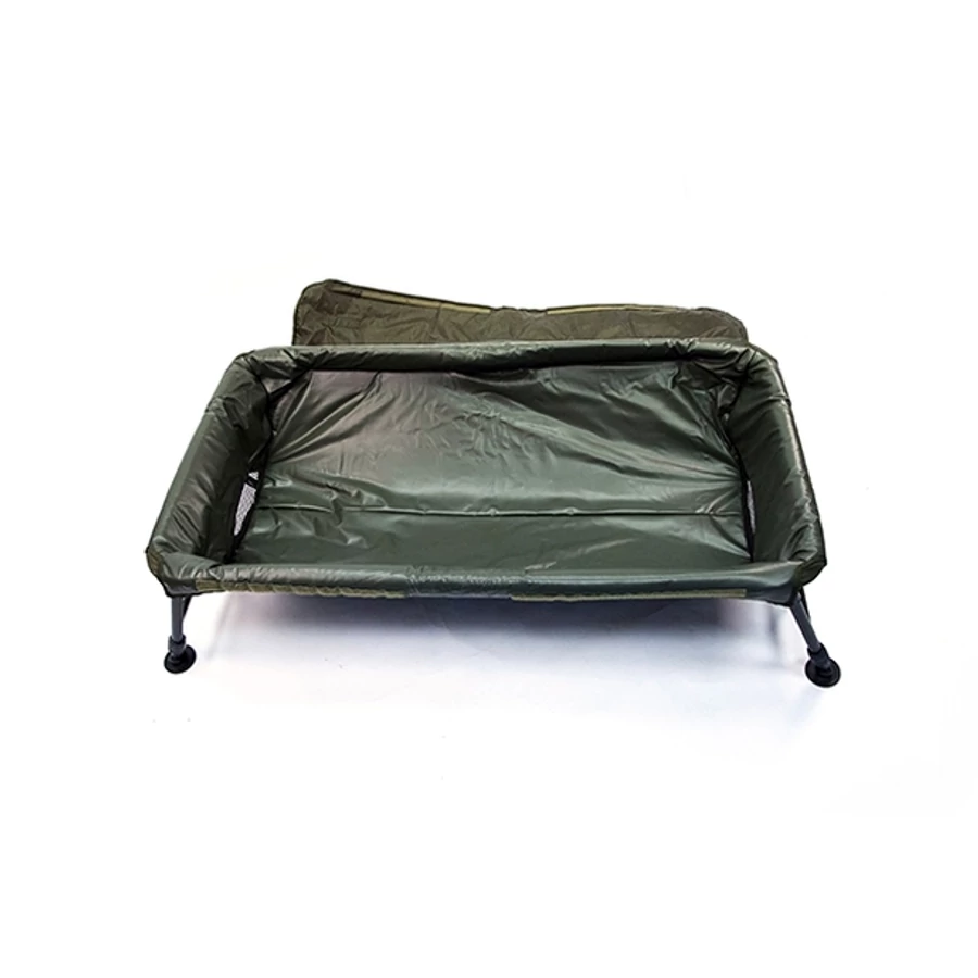 Biztonság és védelem a halnak. Az SK-TEK keretes bölcsőnek egy halat kímélő, PVC betéte van. Az oldalsó elvezető hálón és tépőzárakon kívül egy párnázott térdelőlappal van felszerelve a bölcső és a keretek is külön párnázást kaptak.