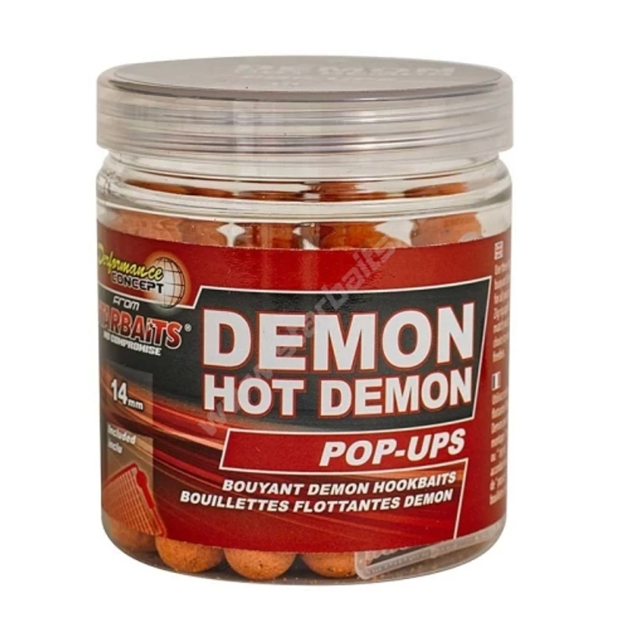 A csípős, fűszeres jellegű Starbaits Hot Demon bojlihoz ízben, illatban passzoló popup, azaz lebegő bojli. A tégely tartalme egy ajándék víztiszta stopper is.