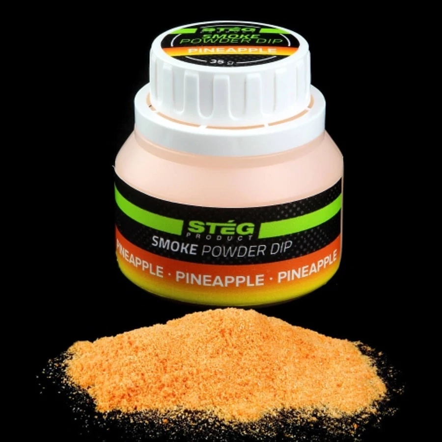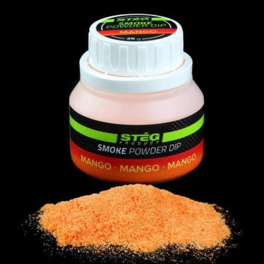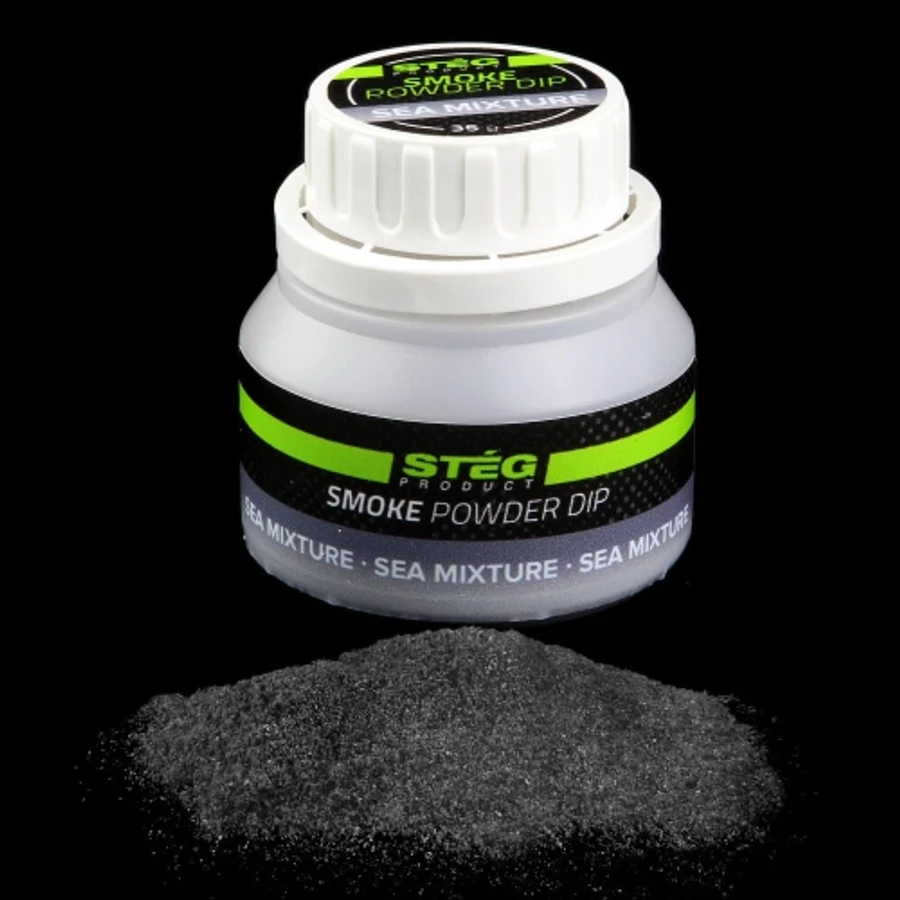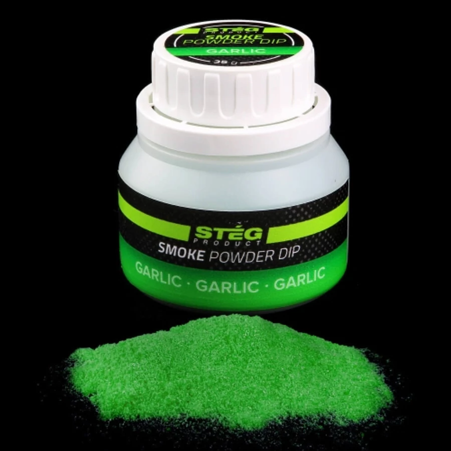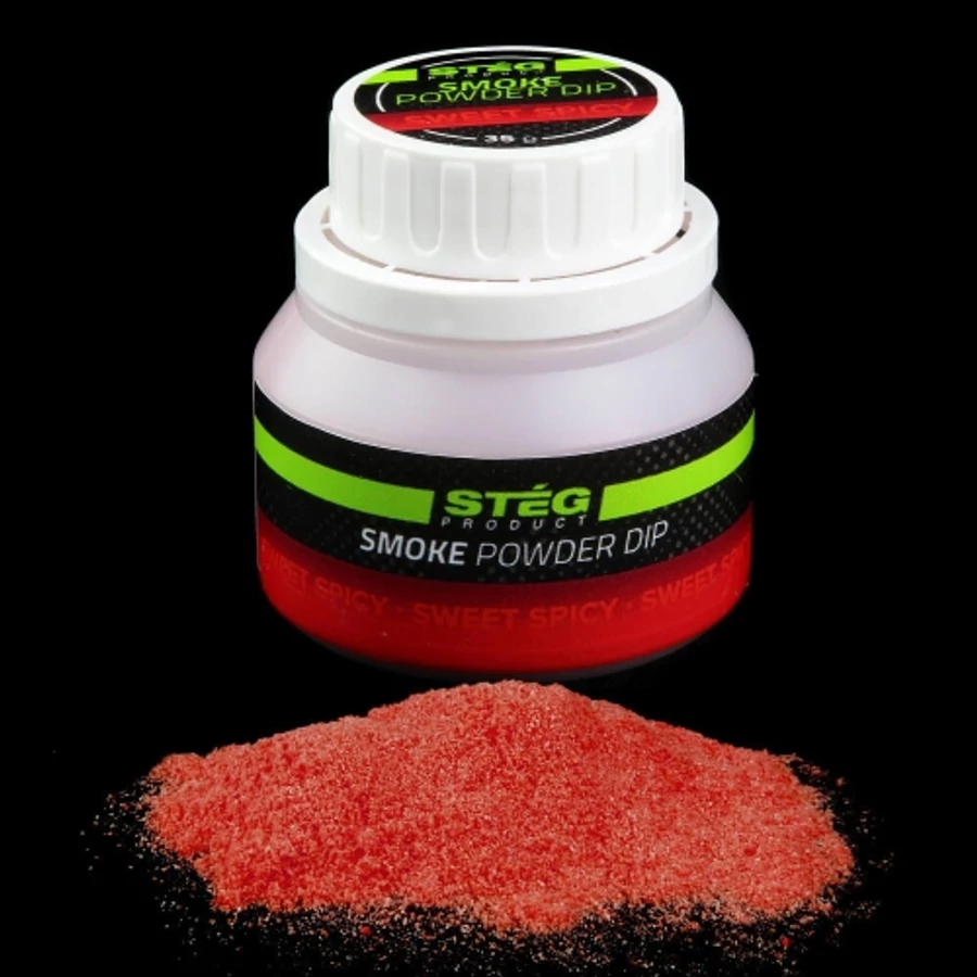 - Ha erősebb csalogató hatást szeretnénk a csalinknak, akkor lehet segítségünkre a Stég SMOKE por dip. A por dippek előnye a folyékony dippekkel szemben, hogy hosszabb ideig fejti ki a hatását, mivel lassabban oldódik vízben. Ezen kívül a vízáramlás sem viszi el a csali környezetéből, mert a leoldódó szemcsék fajsúlyuknak köszönhetően elfekszenek a fenéken.