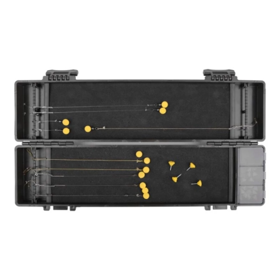 Tökéletes, praktikus ABS műanyag doboz nagy, robusztus záródásokkal. Kis rekeszekkel rendelkezik a tűknek és kisebb tartozékoknak, például forgóknak. Ideális merev szerelékek kifeszített tárolására, hogy ne veszítsék el formájukat.