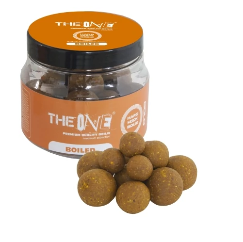A The Gold One főtt bojli egy rendkívül magas szénhidráttartalmú csali. Komplex lisztekből, folyékony stimulátorokból összeállított bojli, mely teljesen hallisztmentes. Aromájában leginkább a vajkaramella és a scopex édes ízei köszönnek vissza. Főtt változata gyorsan löki ki magából az íz és illatanyagokat, így a hosszabb túrák nyerő csalija lehet! Különösen ajánlott ez az ízvilág a nagy kiterjedésű, természetes vizeken. A bojli mix 14 -20 mm-es méretű golyókat tartalmaz, így könnyen lehet a halak kapókedvéhez igazodni a csali méretével. Nem csak hétköznapi horgászatokra ajánlott, hanem akár pontyfogó versenyeken is bátran használható. Rendkívül „gyors” bojli, azaz rövid időn belül rátalálnak a halak, majd értékes beltartalma miatt garantáltan visszatérnek az etetésre.